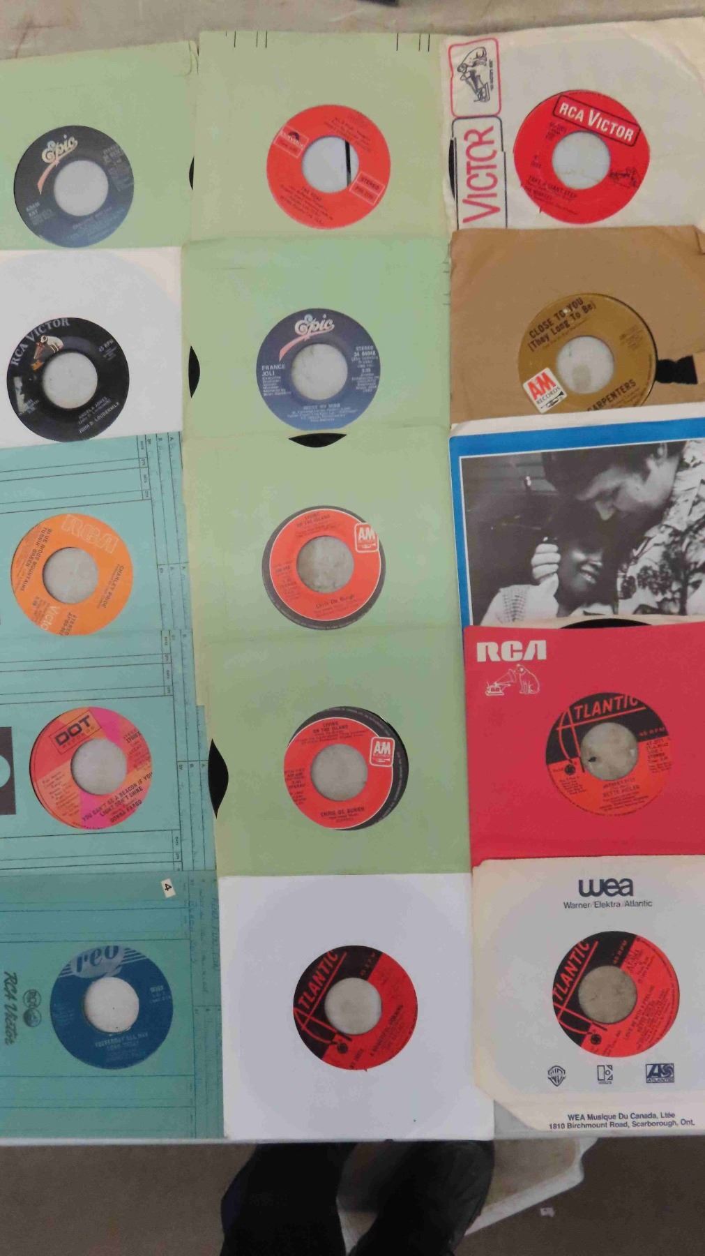 90++ 45 RPM Records ; Donna Fargo, Charlie Pride, Carpenters, plus more