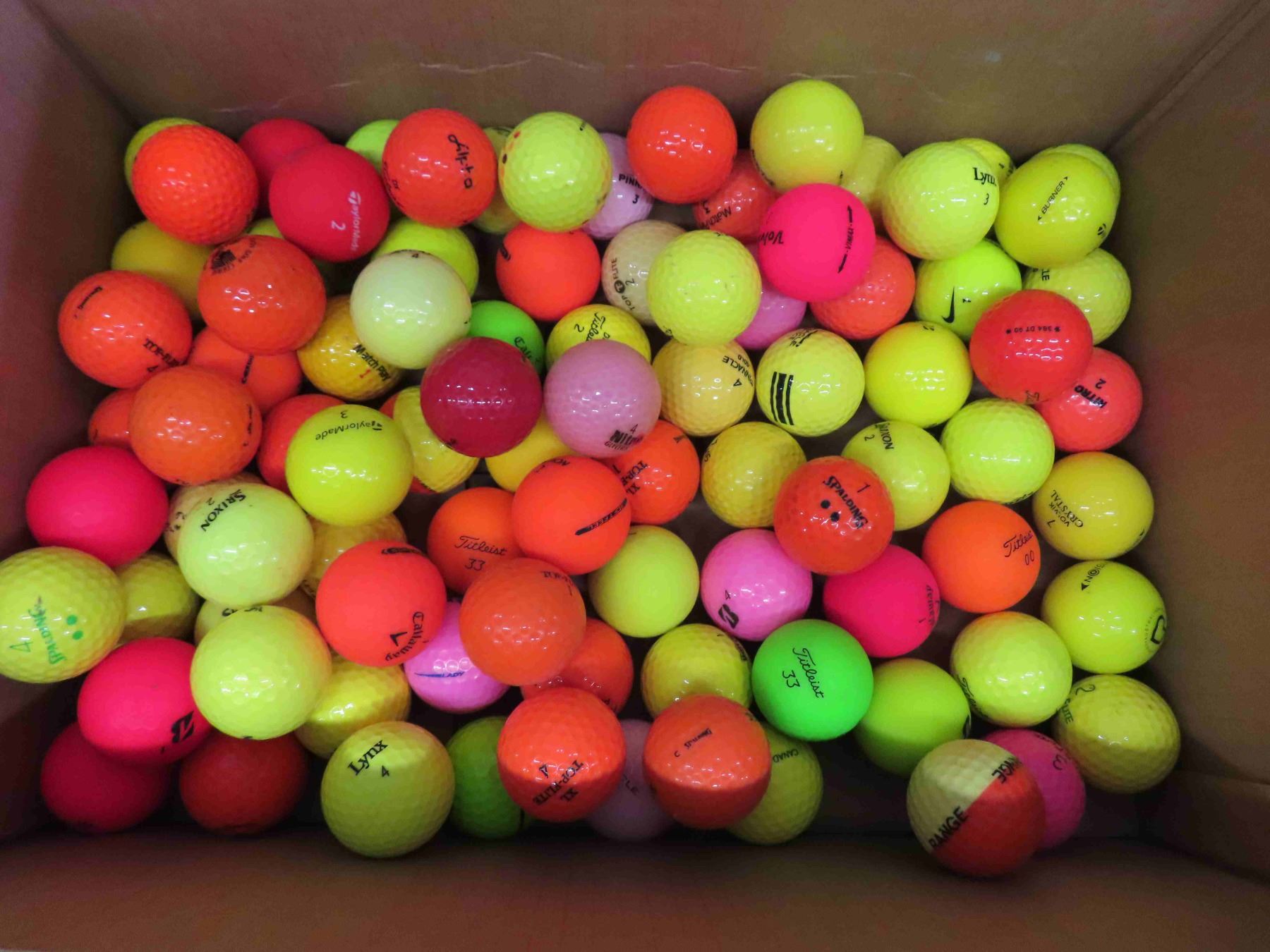 90 Assorted Colored Golf Balls ; Top Flite, Pinnacle, Spalding, plus more