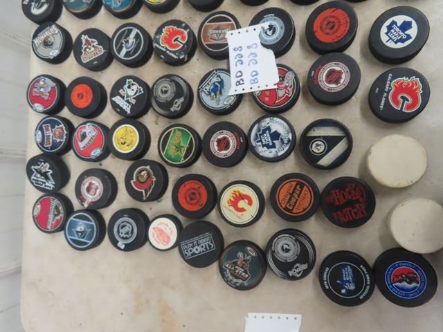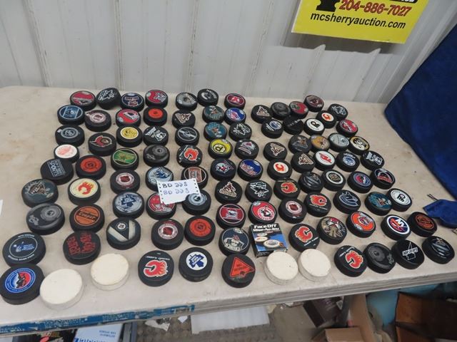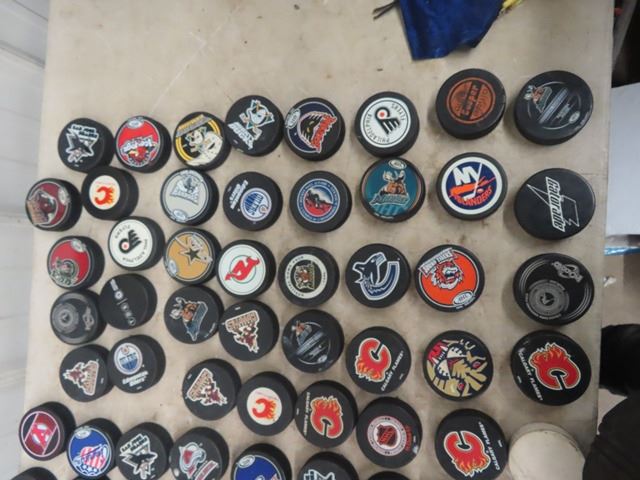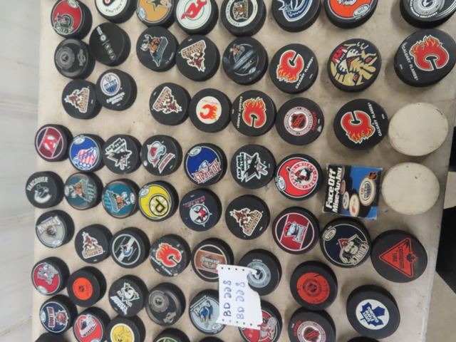 99 AHL + NHL Hockey Pucks in Very Good Condition
