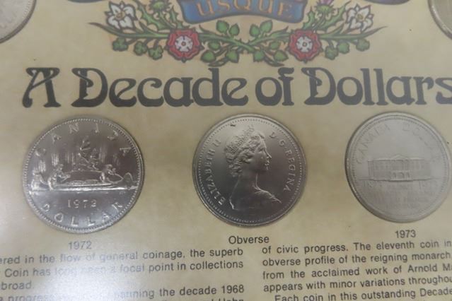 A Decade of Dollars 1968 - 1977 - 11 Coins Total - Framed