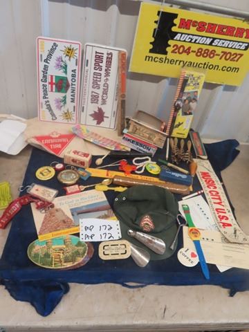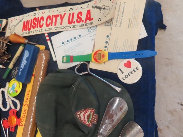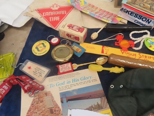 A & W Ruler, Pex Dispenser, Button, Key Chain, Old Wood + Leather Darts
