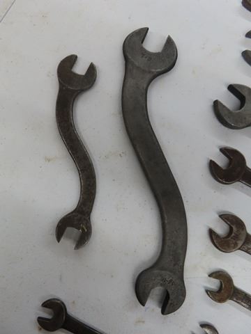 A huge lot of Vintage Antique Gray Wrenches of Canada. Gray was Canada’s first premier wrench Co. beginning about 1912. They were made originally manufactured out of Toronto Canada. Up for auction are 15 of Gray’s earliest wrenches. They range in size from 5/16 to 1”. Besides 12 double open-end wrenches there are 2 S wrenches and one rare offset box end wrench. A great collection.