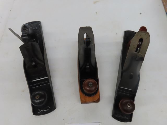 A lot of 3 Antique Vintage Woodworker’s Planes; (1) Stanley Bailey No. 50 ½ - 15” in length. It has been partially restored but it does not contain a blade. The bottom is corrugated but has pitting on the base where there was once rust - should not impede its use + (2nd) appears to be a # 4 but is not marked- 14” in length. Both the base and the blade say made in Canada & (3rd)is a transitional plane. It does not seem to have a maker or No. but the blade says made in Canada.