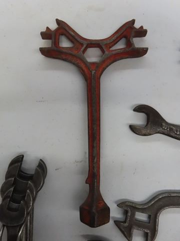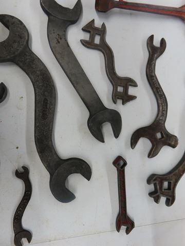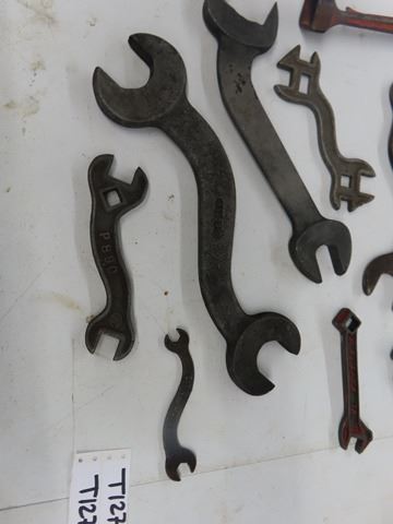 A very large lot of Antique Vintage tools; /international Harvester, Toronto plow company, John Deere, an unmarked set. The 2 large wrenches are marked, international harvester + Fairmount 112659.