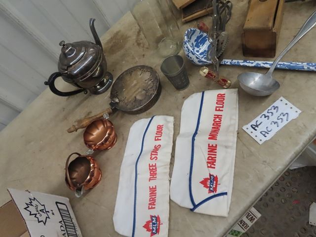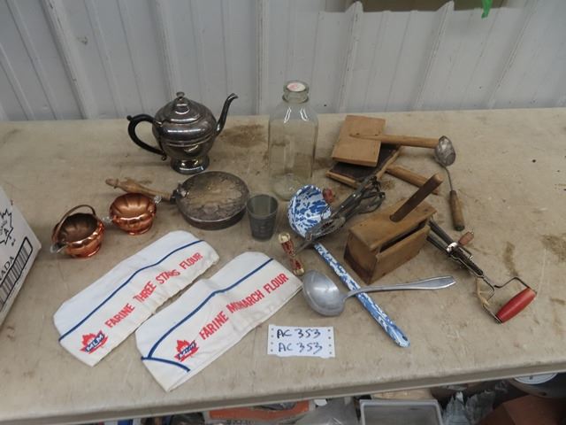 (AC) Silver Teapot , Cream & Sugar, Wool Cater, Butter Press, Granite Laddle Plus More