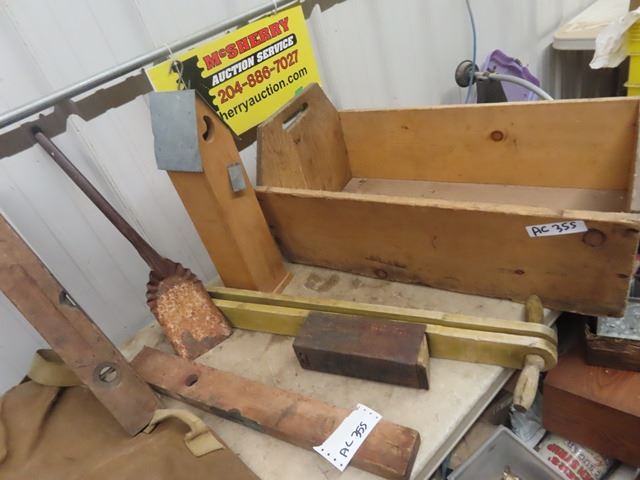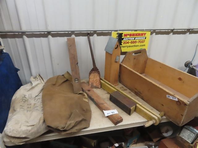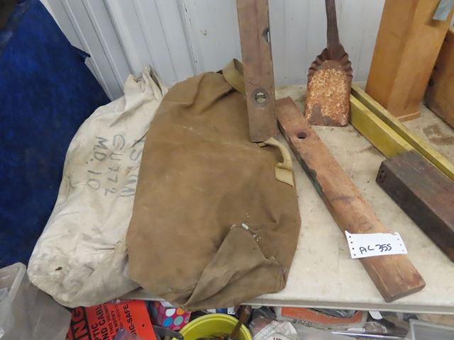 (AC) Wooden Tool Box, 2 ARmy Bags, 2 Levels, Corn Planter, Plus More!