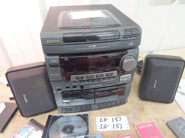 AIWA Stereo AM FM /CD/Cassette Record Player w 30 CD's & Cassettes