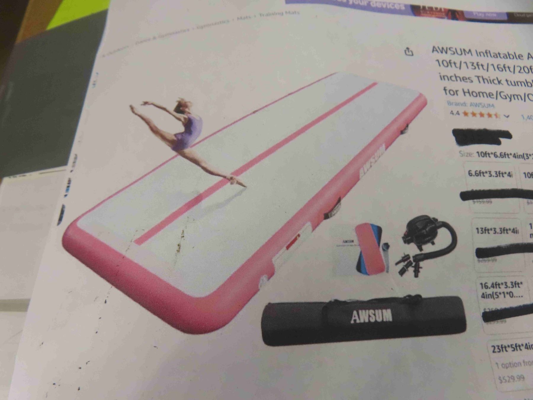 AWSUM infllatable air gymnastics mat 10FT/13FT/16FT/20FT/23FT training mat 4/8" thich tumbling mat with electric pump for home/gym/outdoor. New or store return