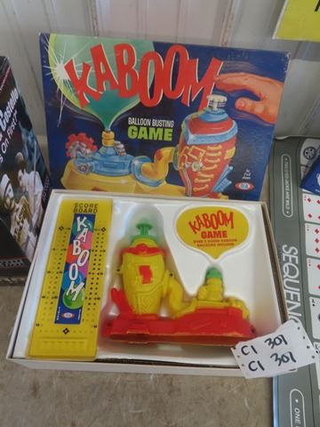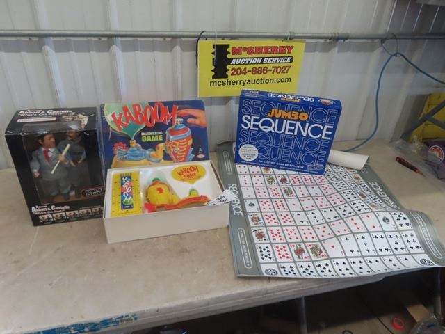 Abbot & Costello Figurines in Box, Vintage Kaboom Balloon Game, Jumbo Sequence Game