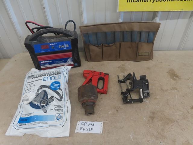 Ac Delco I7005 Battery Charger, Stapler, Bucket Tool Pouch, Proto 21/2" Socket