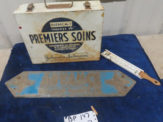 Advance Metal Plate, Johnson & Johnson Metal 1st Aid Box, Handled Thermometer 5" x 21"