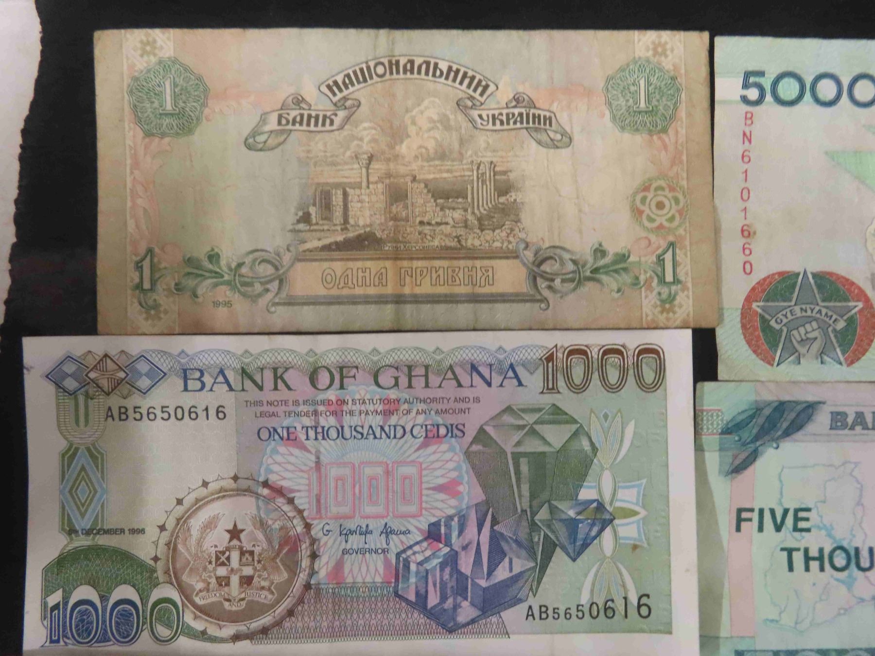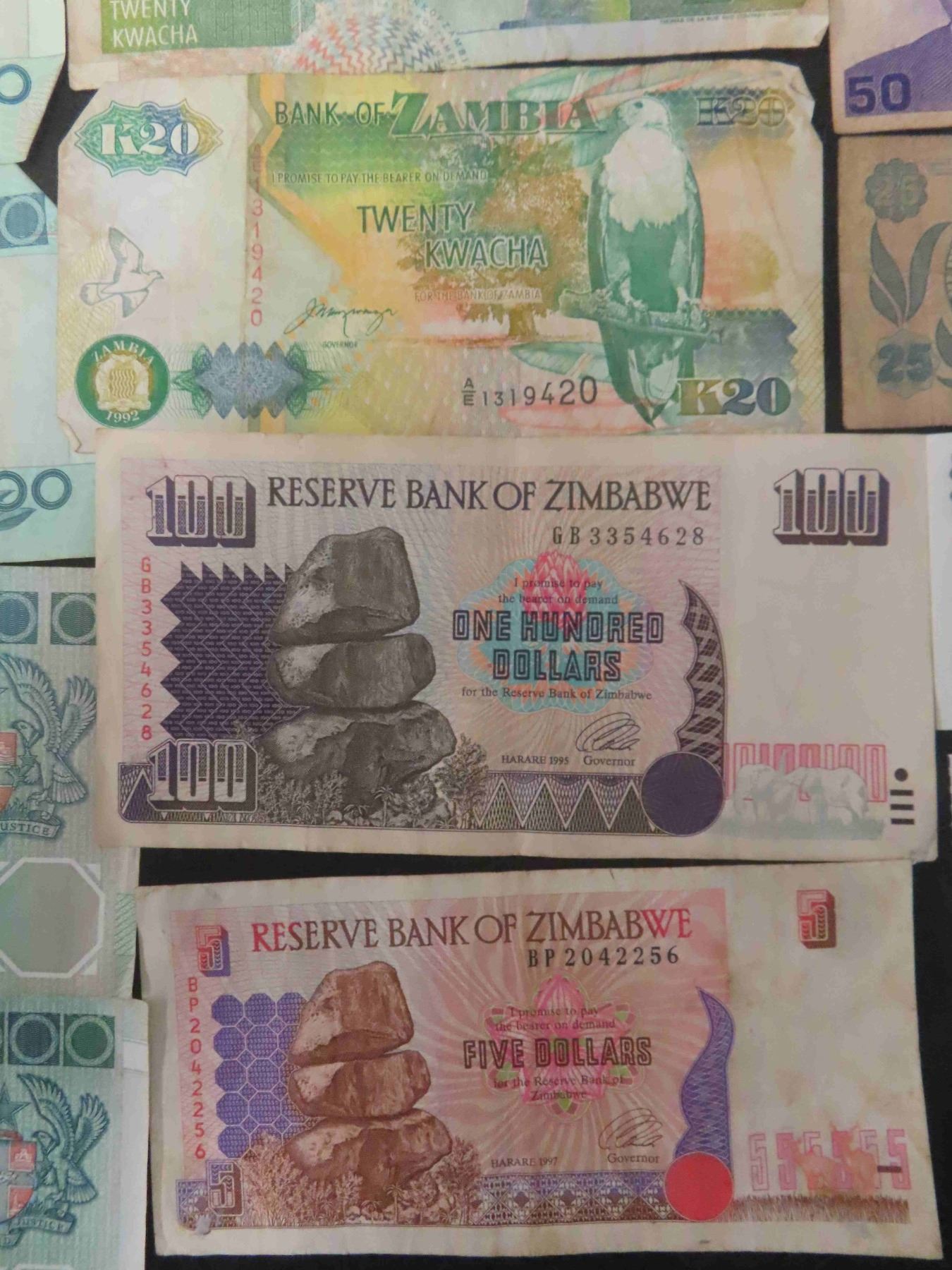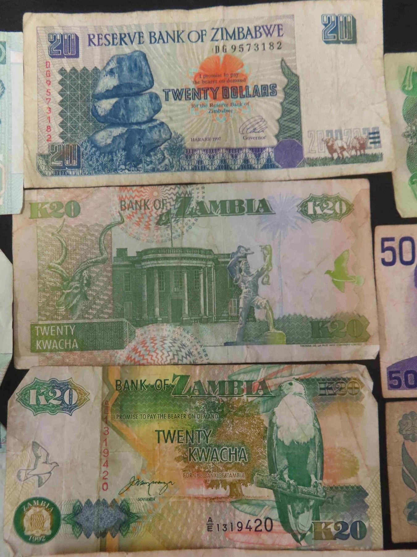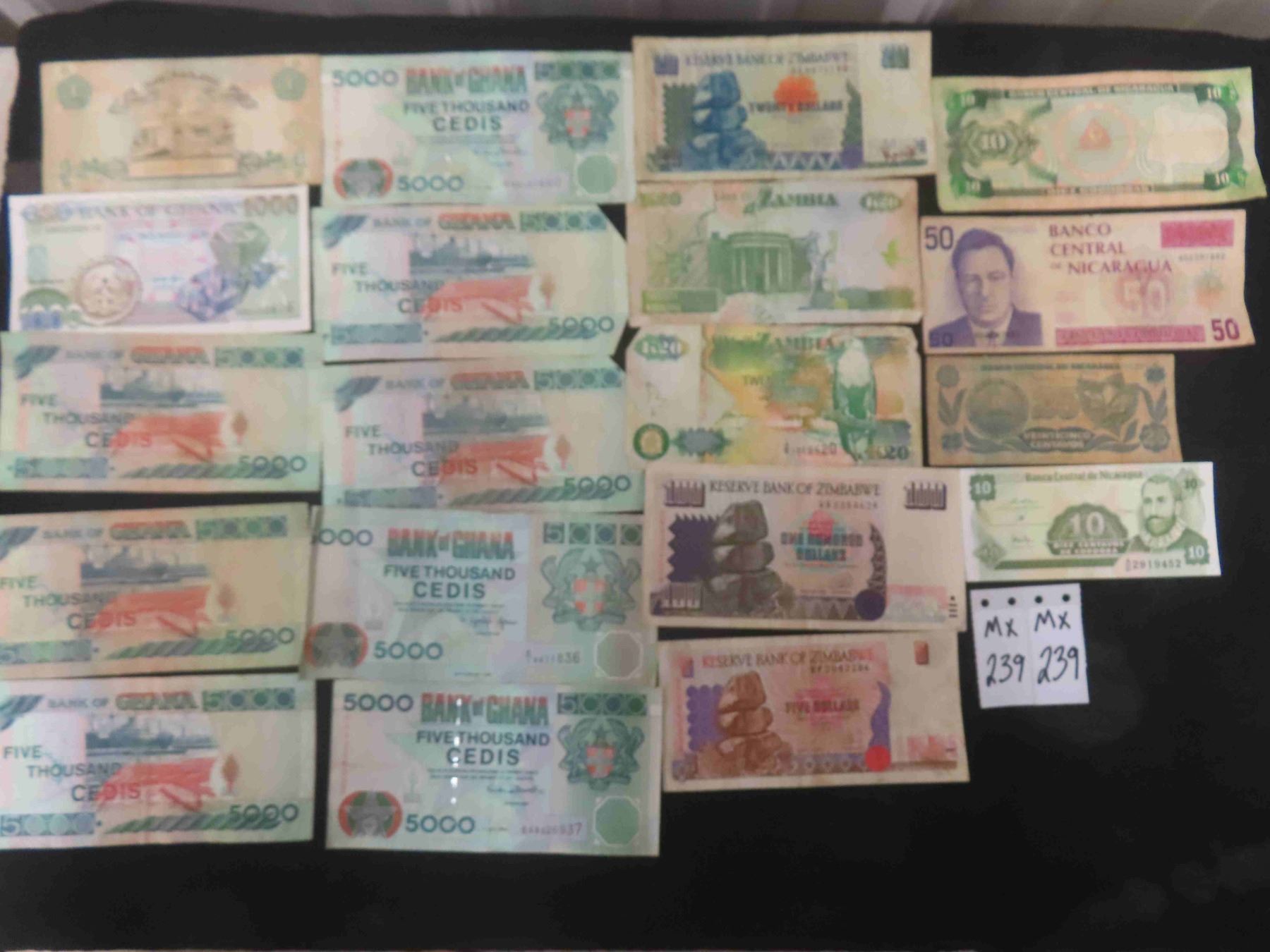 African Currency, Nicaragua, Zambia, Zimbabue and Ghann 19 Bills