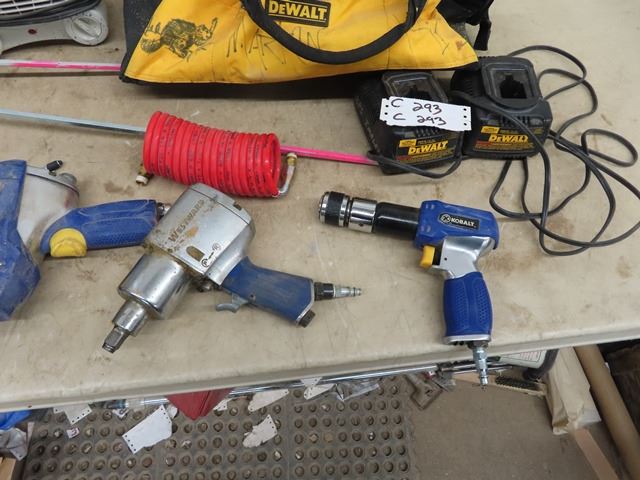 Air Hammer, 2) 1/2" Air Impacts, 2 De Walt Charger 2 Paint Mixer Attachments