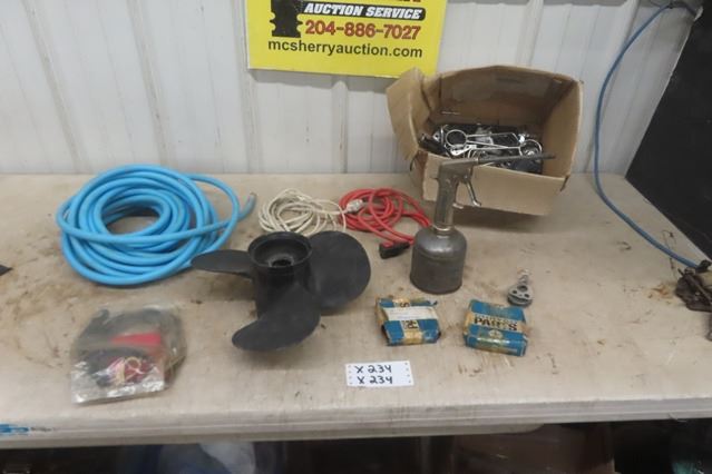 Air Hose, Extension Cords, Propeller, Oil Stream Gun +  Box of Goodies