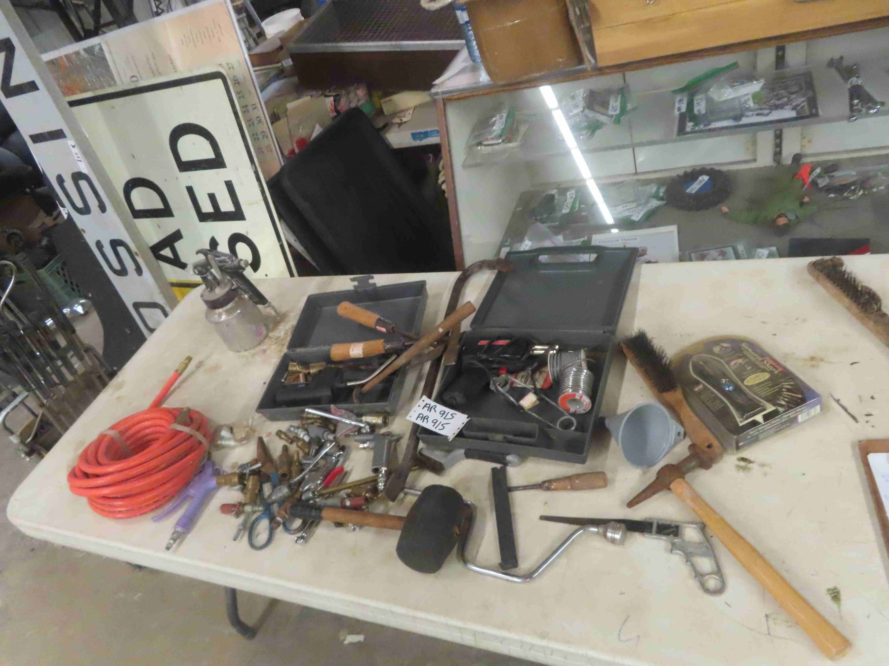 Air Paint Sprayer, Air Hose, Couplings, Blower, Soldering Gun, Wire Brush, Blade Sharpener, plus more