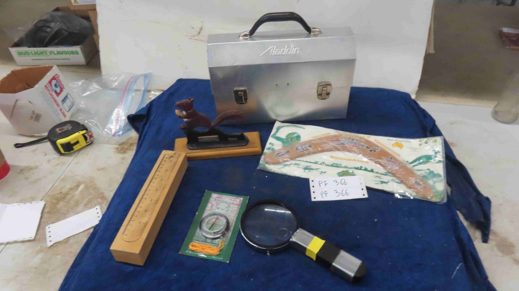 Aladdin Metal Lunch Box, Australian Genuine Boomerang, Nut Cracker, Compass, plus more