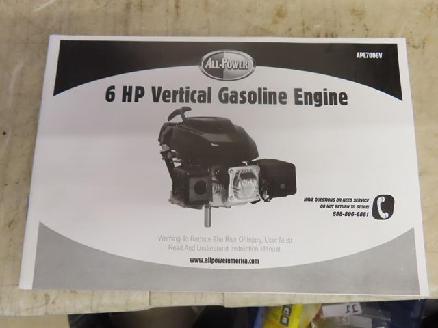 All Power 6HP Vertical Gasoline Engine - New in Box Never Used