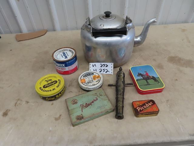 Alum Kettle, Picobec Tobacco Tin, Cannon Barrel, Saddle Soap Tin, Plus