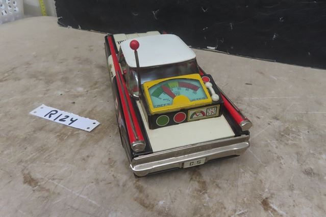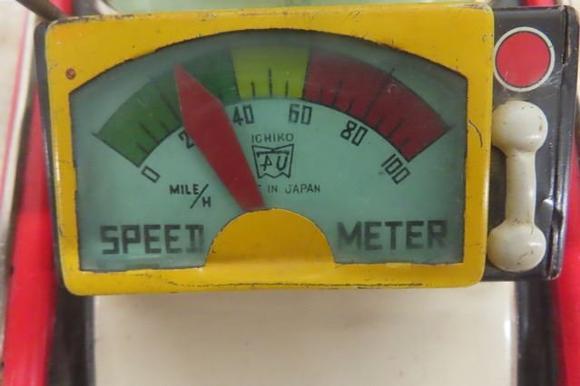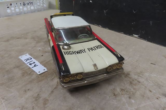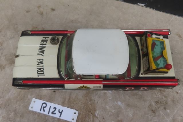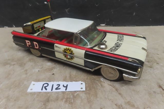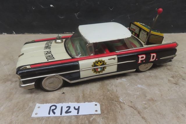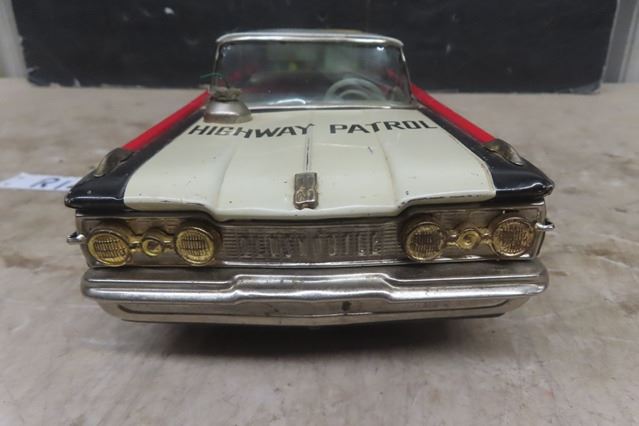 Amazing Pressed Tin Oldsmobile 88 Highway Patrol Car , Battery Operated with Speed Meter - Chiko Japan 13" Long