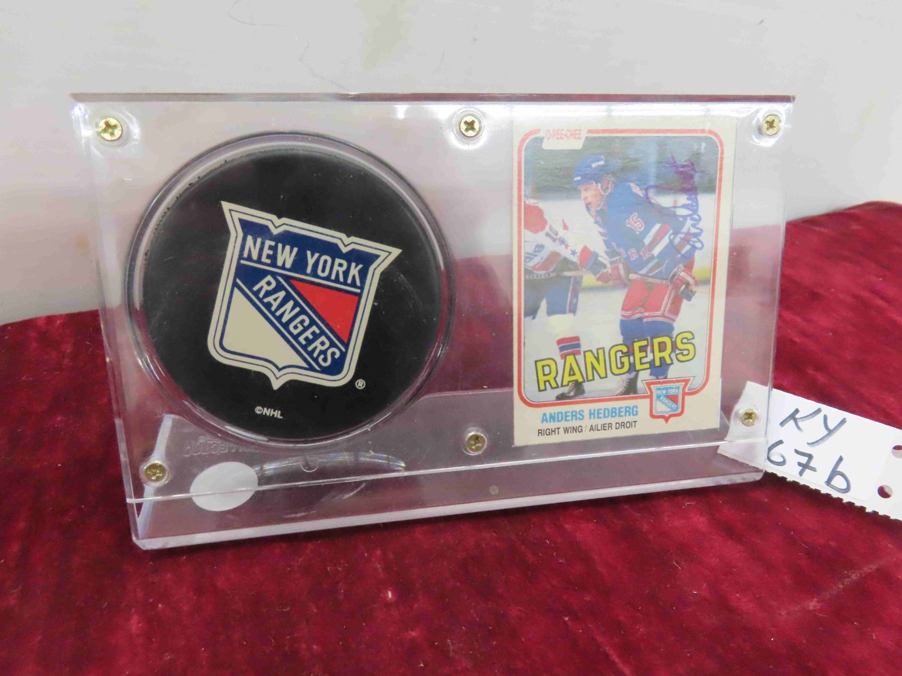 Anders Hedberg , New York Rangers Autographed Puck + Card Display