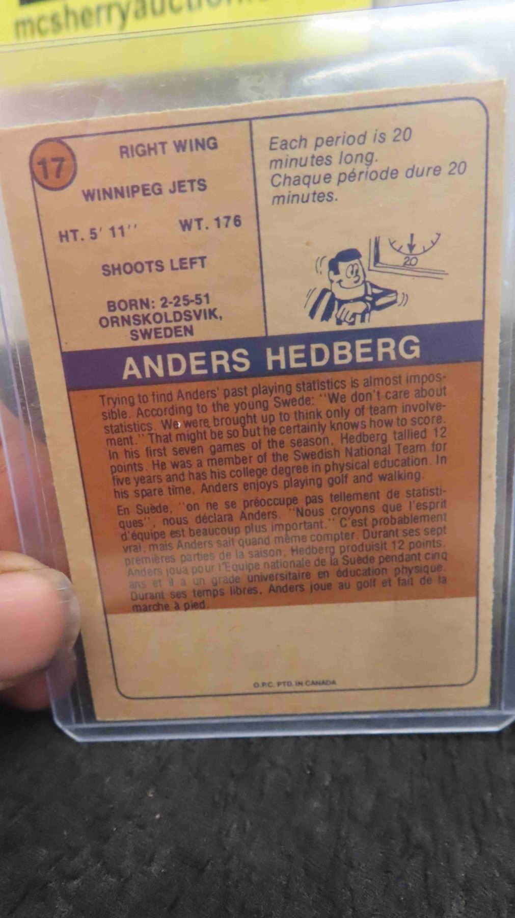 Anders Hedberg Winnipeg Jets Rookie Card