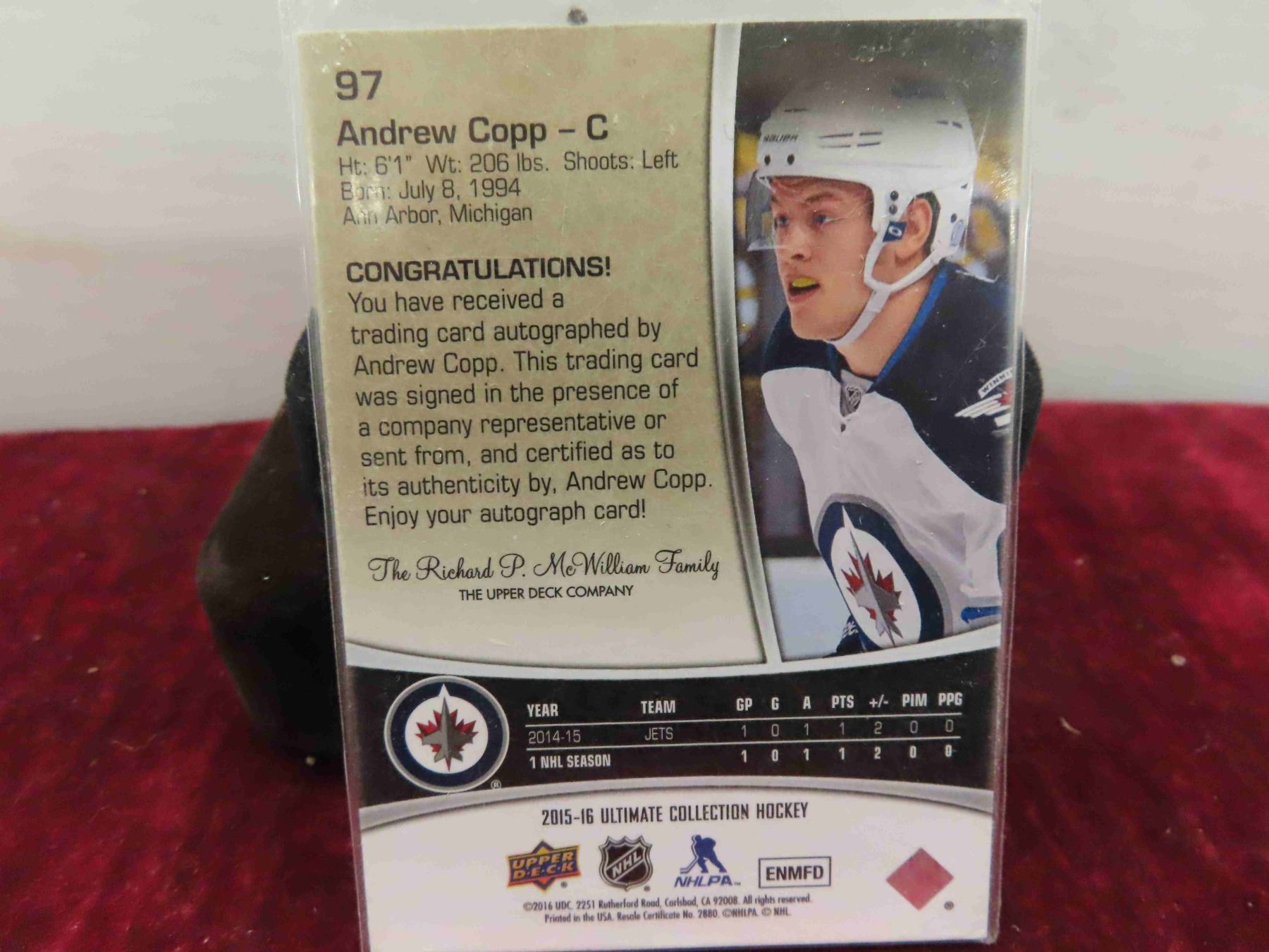Andrew Copp Winnipeg Jets Autographed Card -