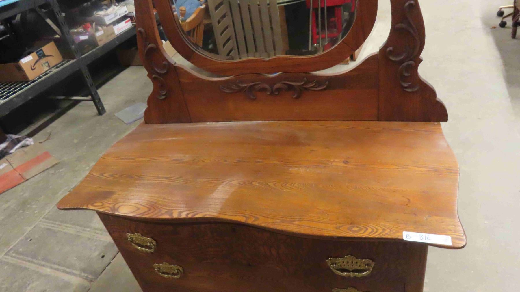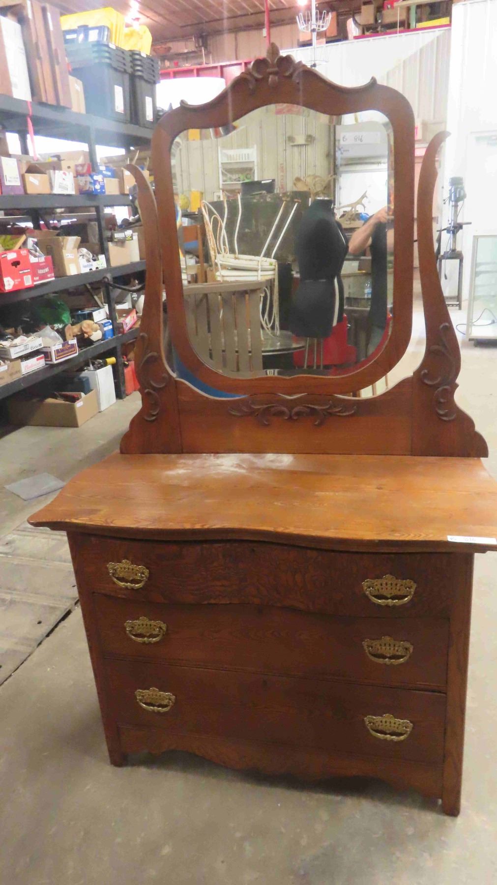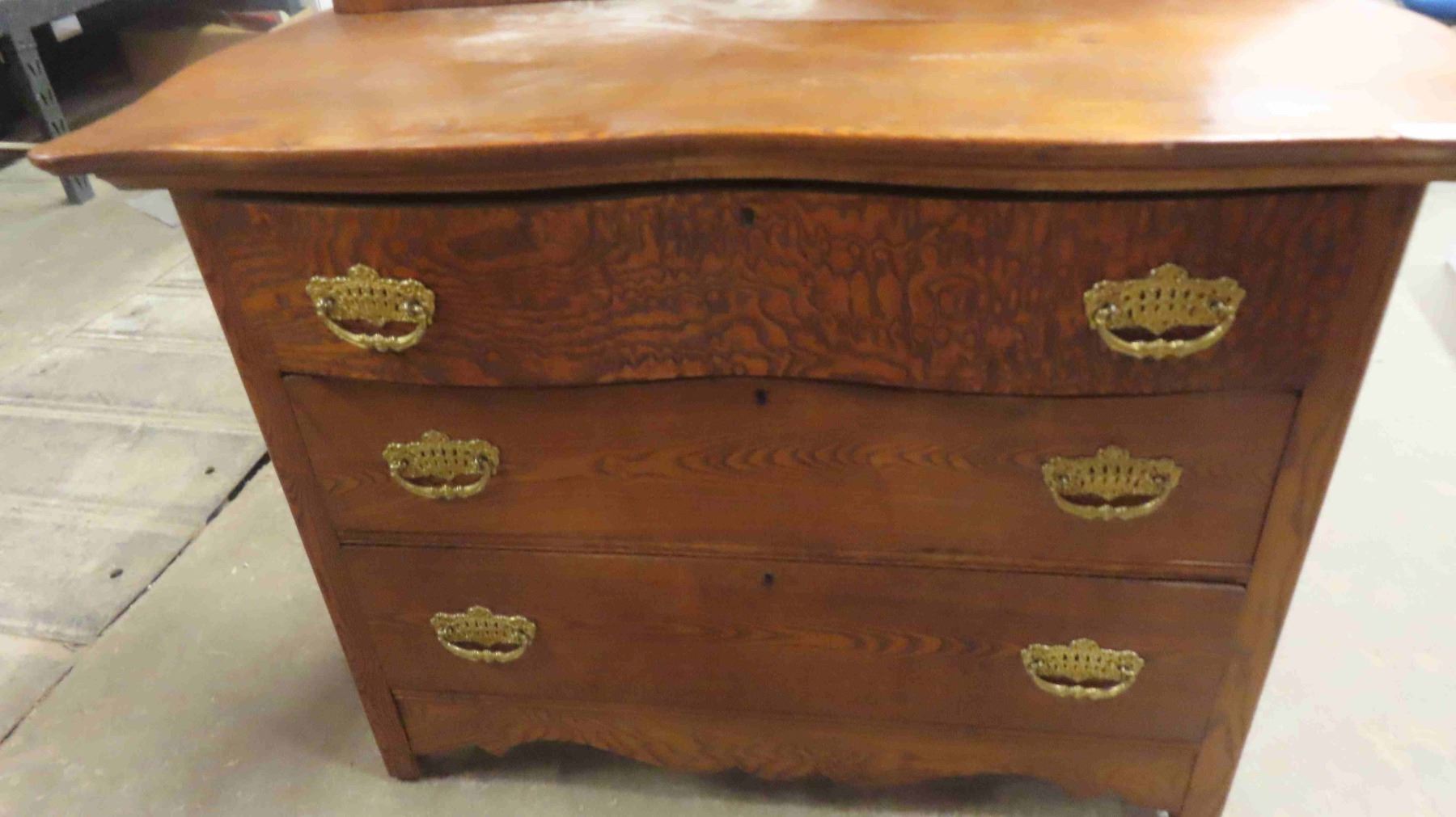 Antique 1/4 Cut Oak Dresser with Serpentine Front 31'' x 42'' x 19'' & Mirror 39'' x 30''