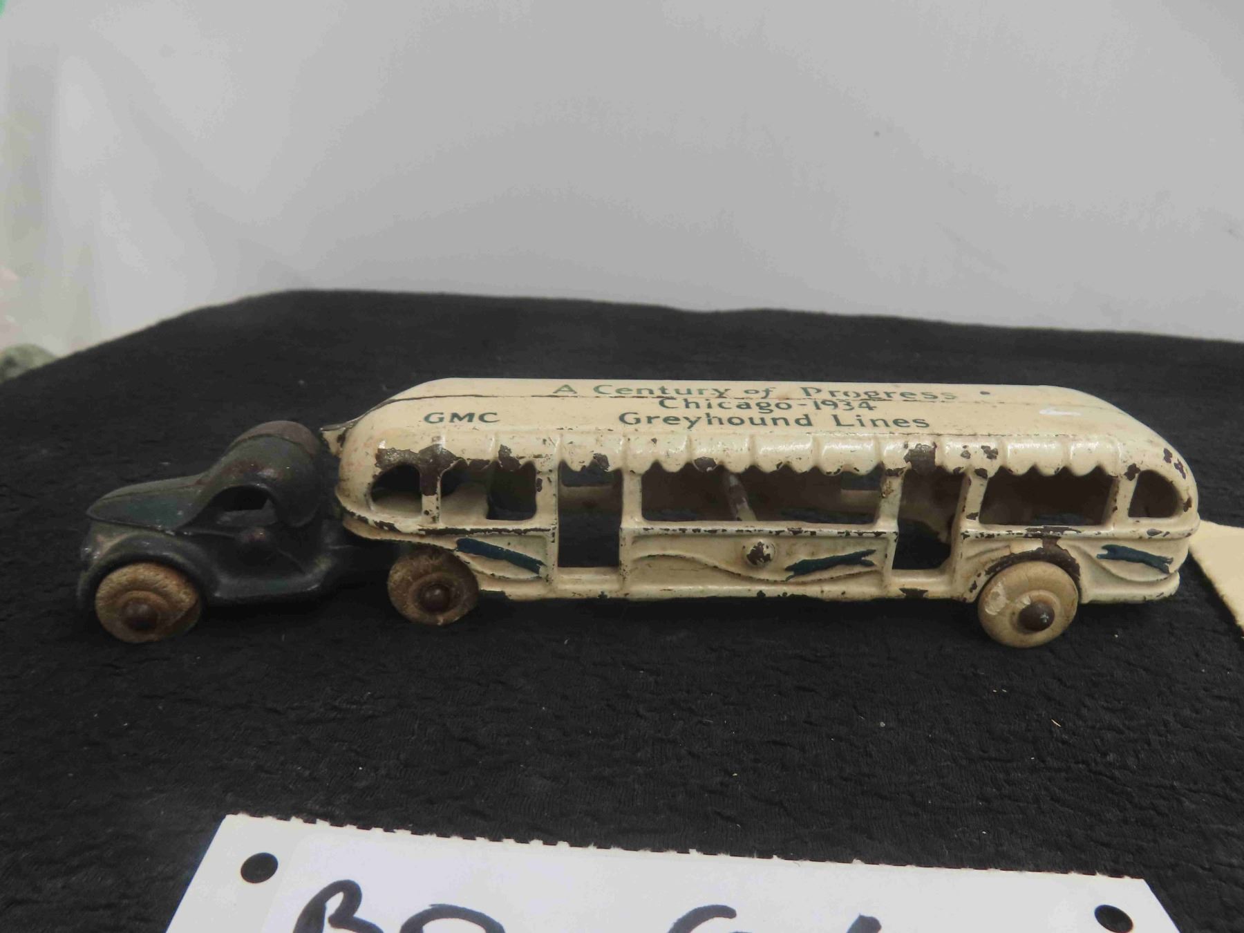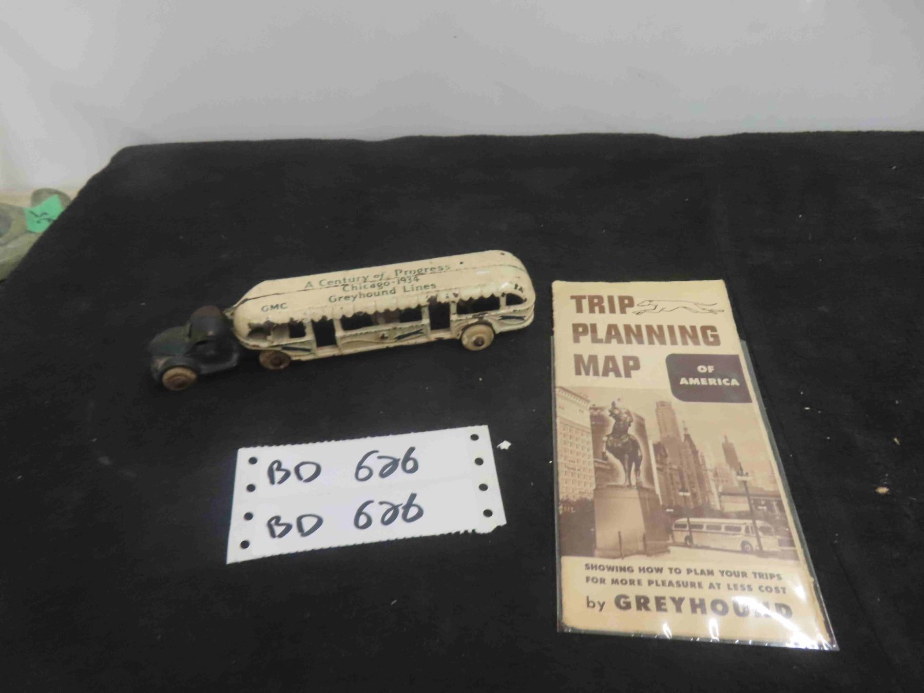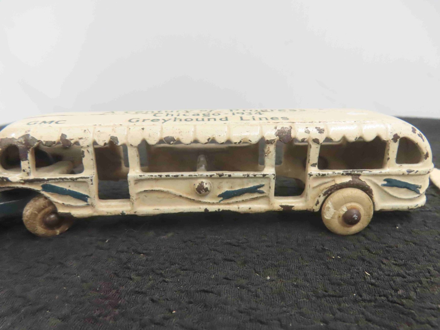 Antique 1934 Chicago Worlds Fair Cast Iron Greyhound Bus 9" - Nice Early Piece & Old Planning Map