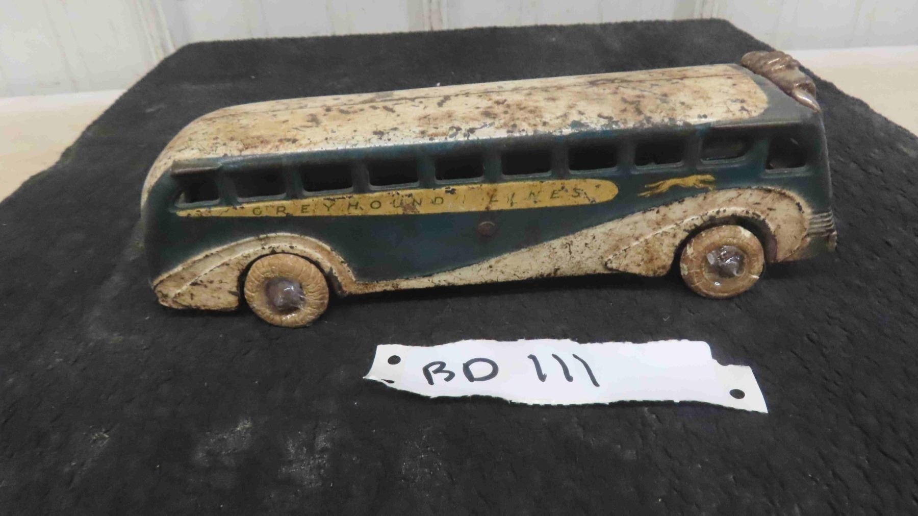 Antique 1939 Cast Iron Greyhound Bus 9'' Long - No Breaks to Cast Iron But Is Missing Back Door , Very Nice Old Toy