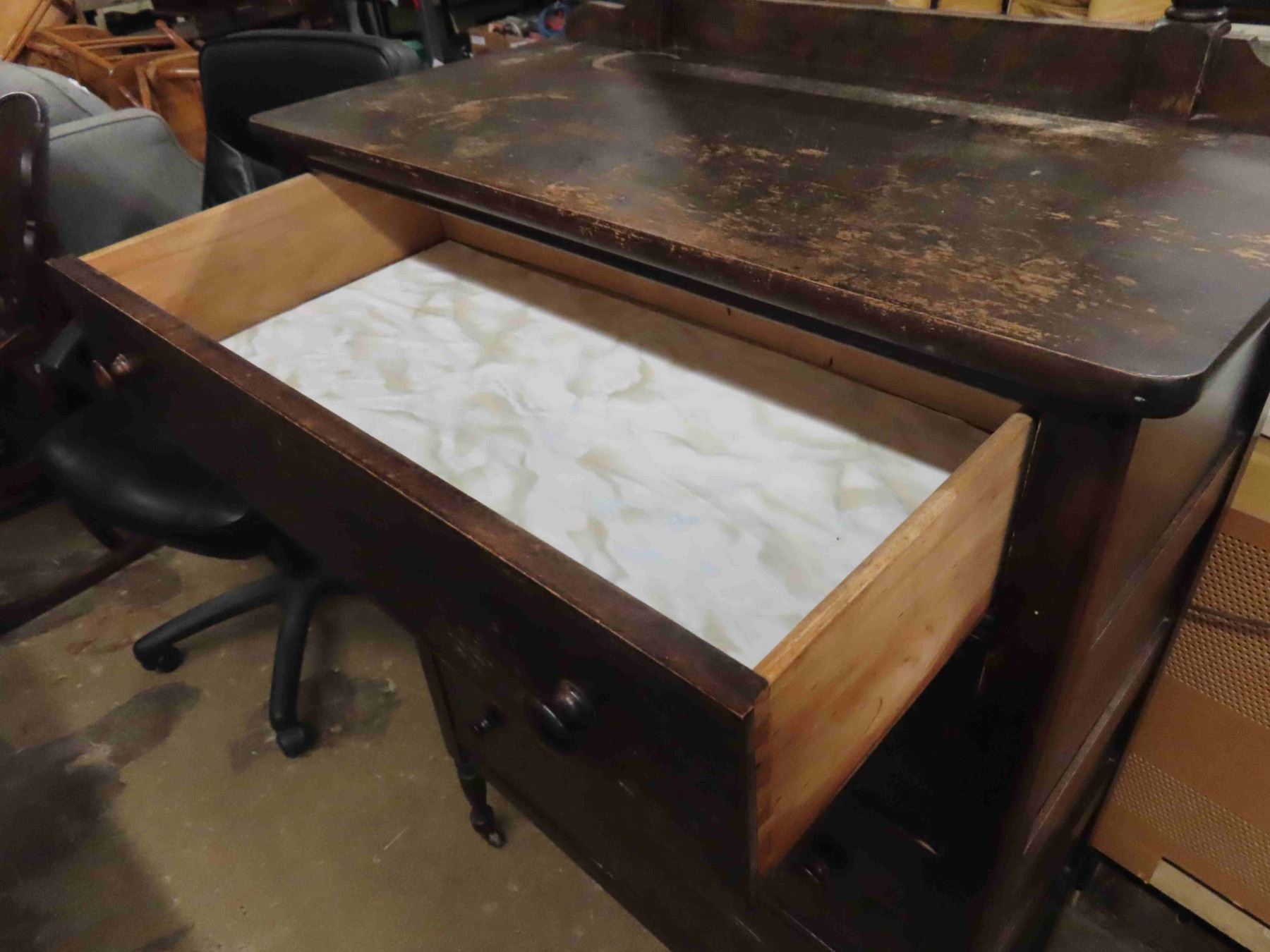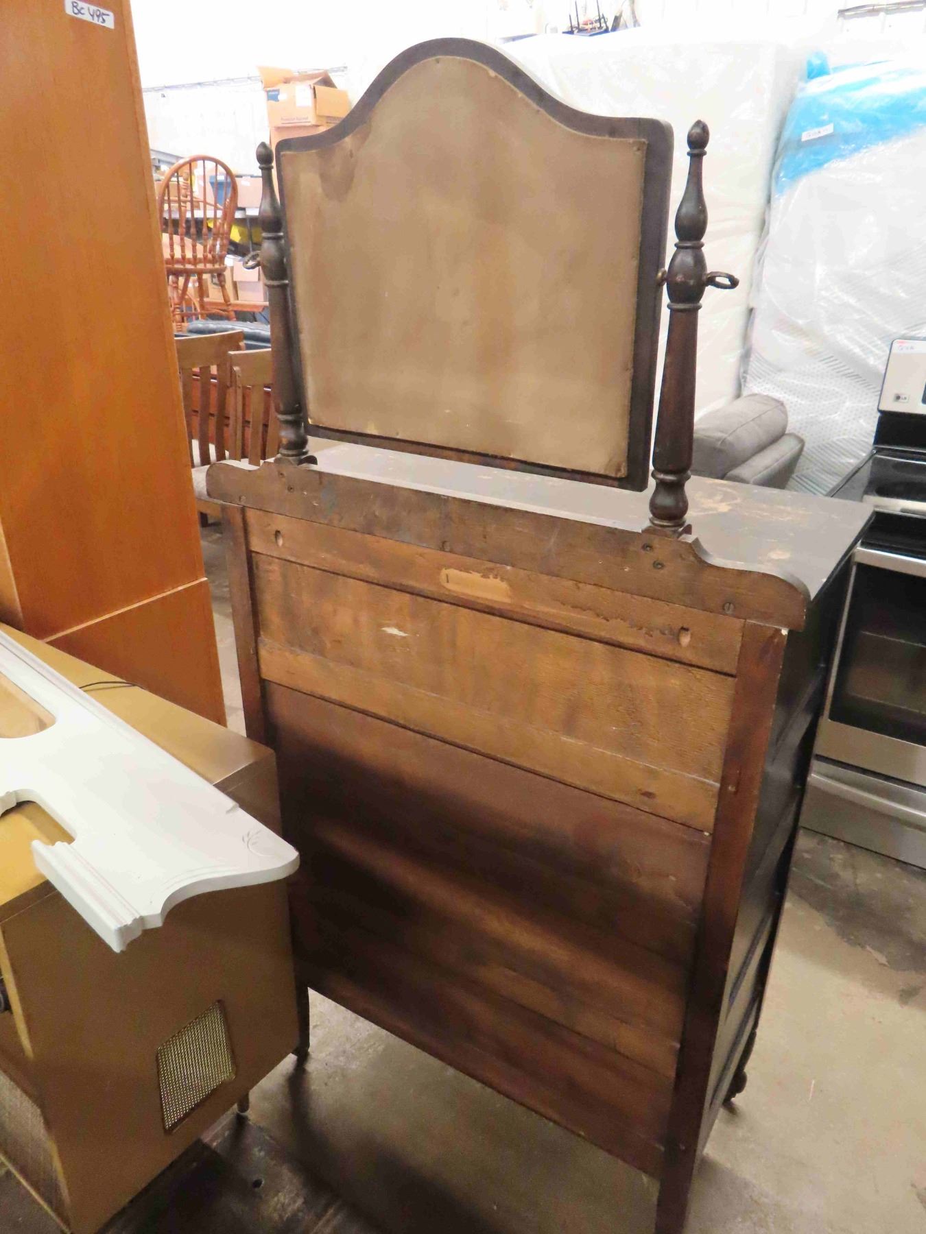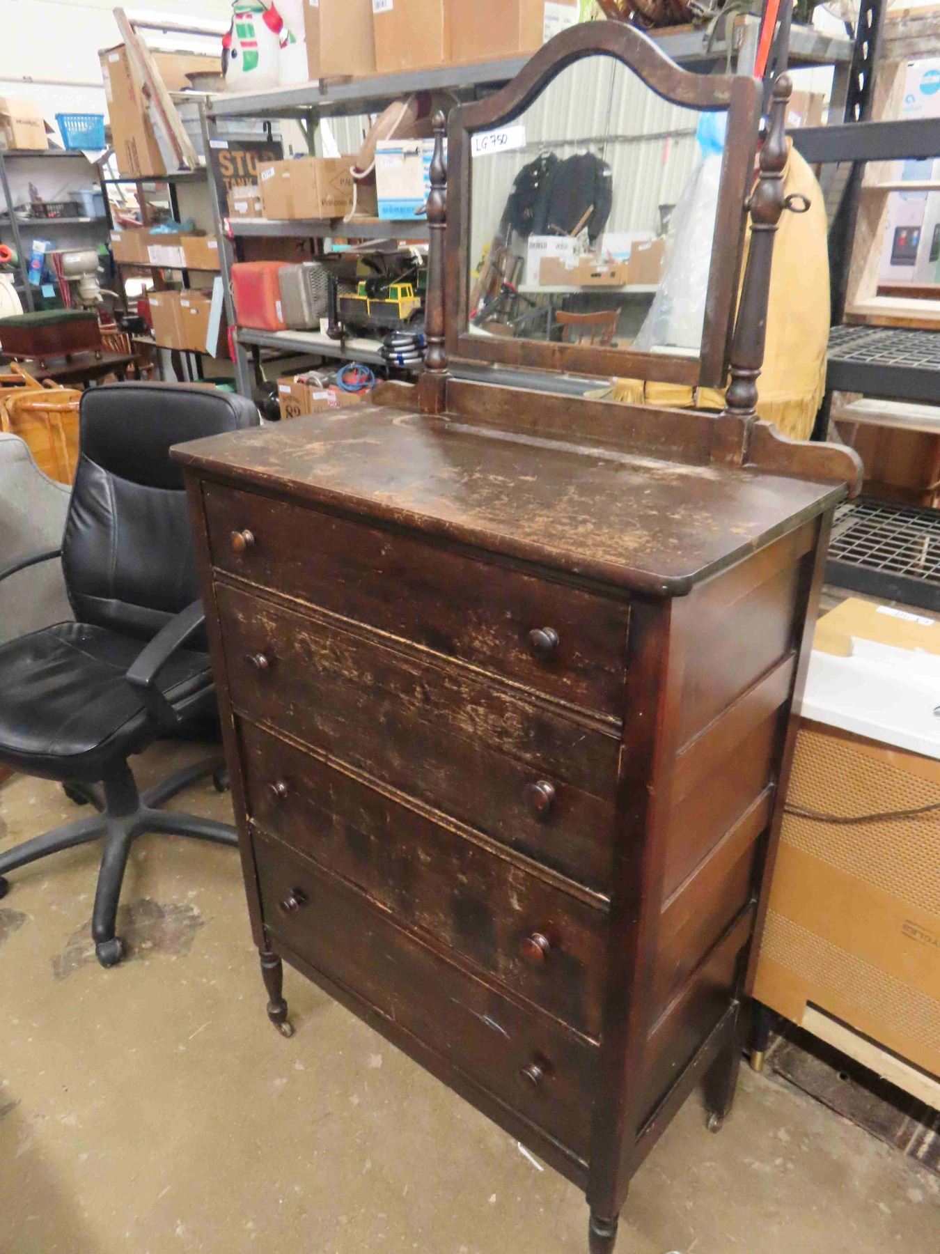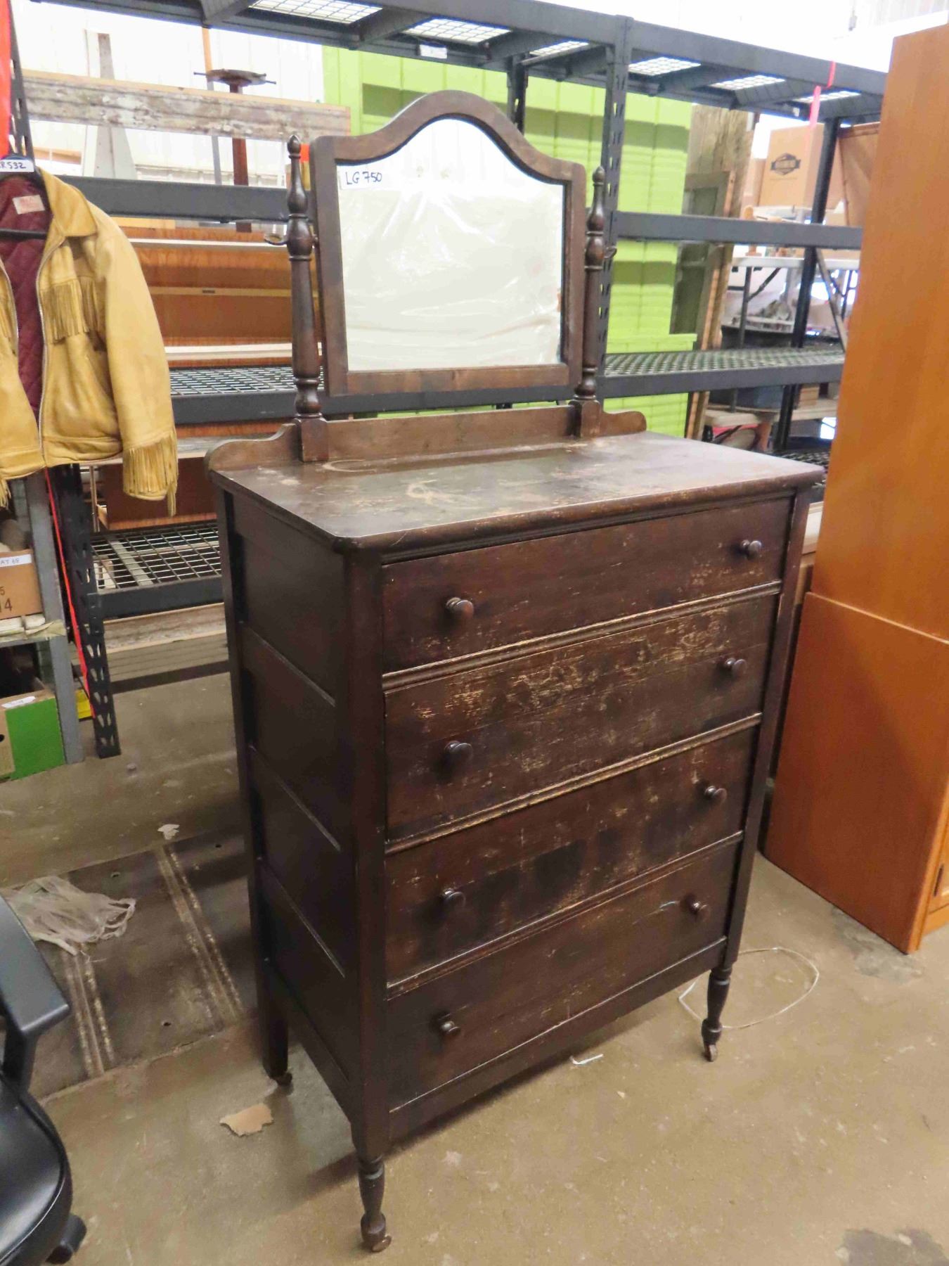 Antique 4 Drawer Dresser 17" x 32" x 47" with Mirror 17" x 21" -on Casters