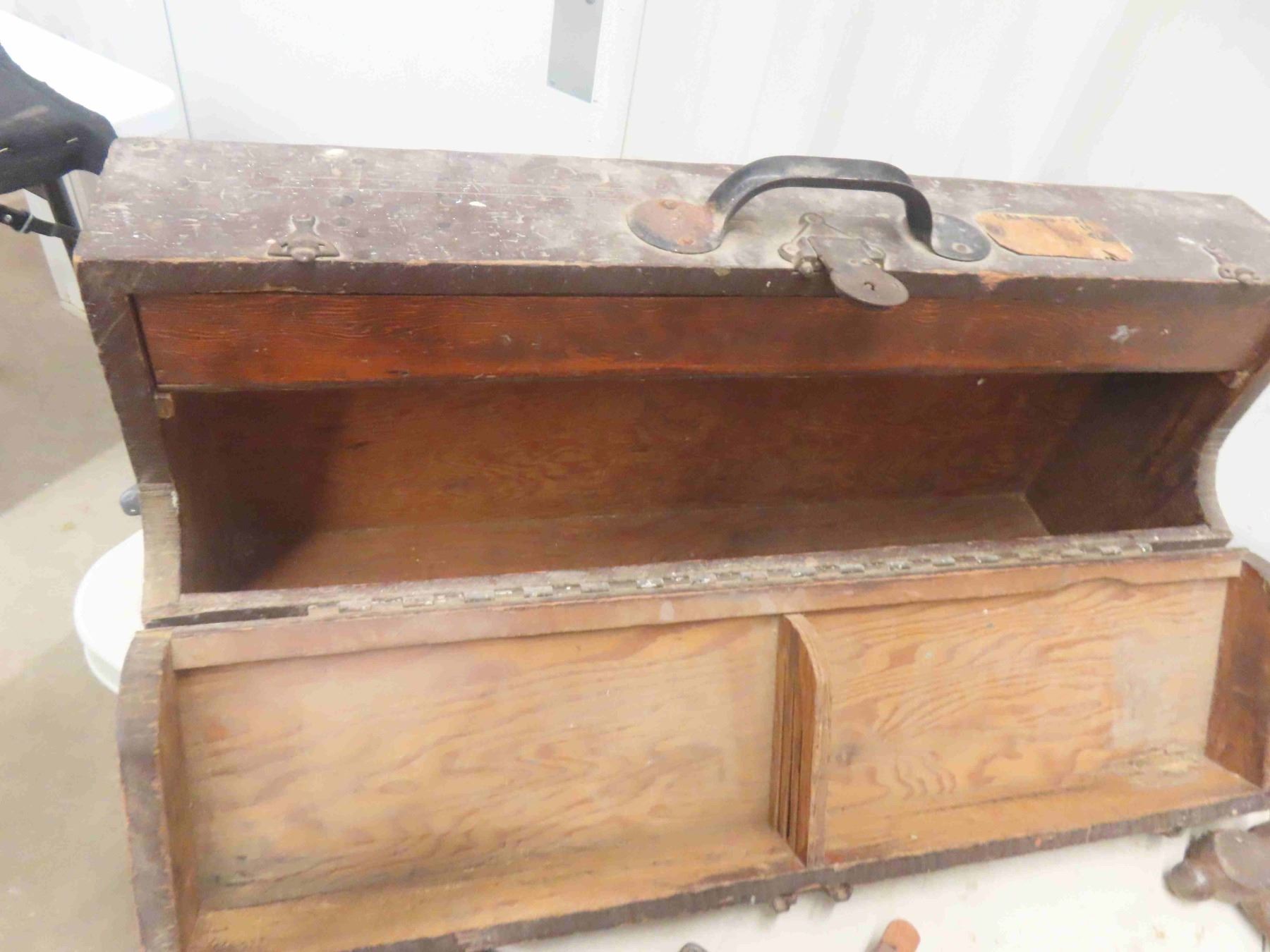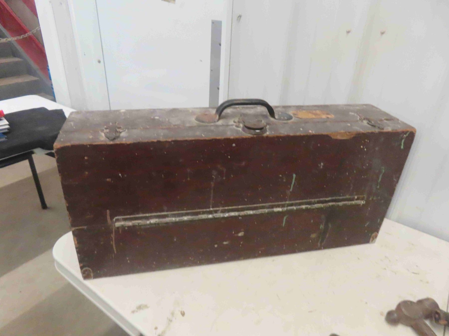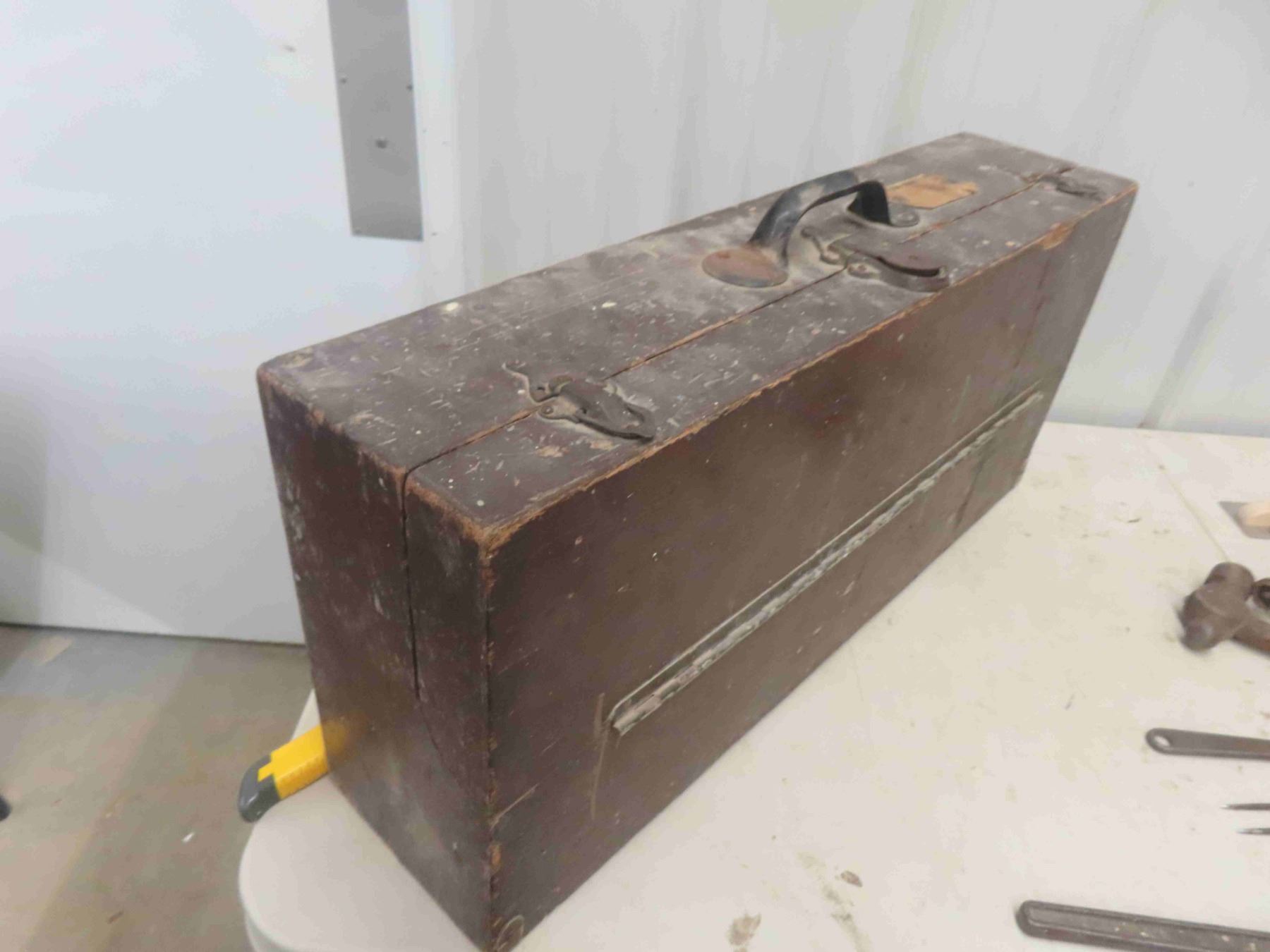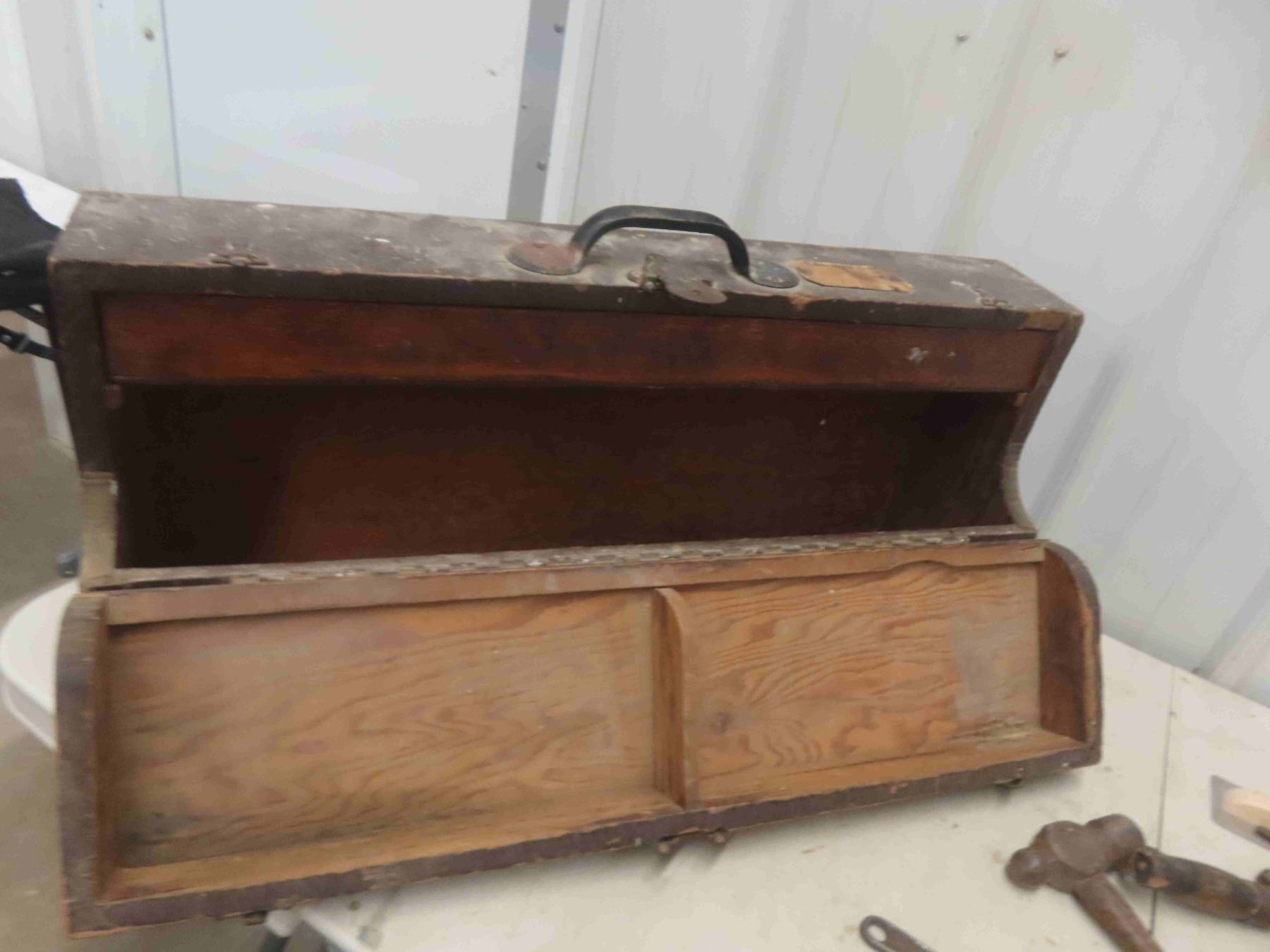 Antique Carpentry Tool Box with Some Tools; Saws, Draw