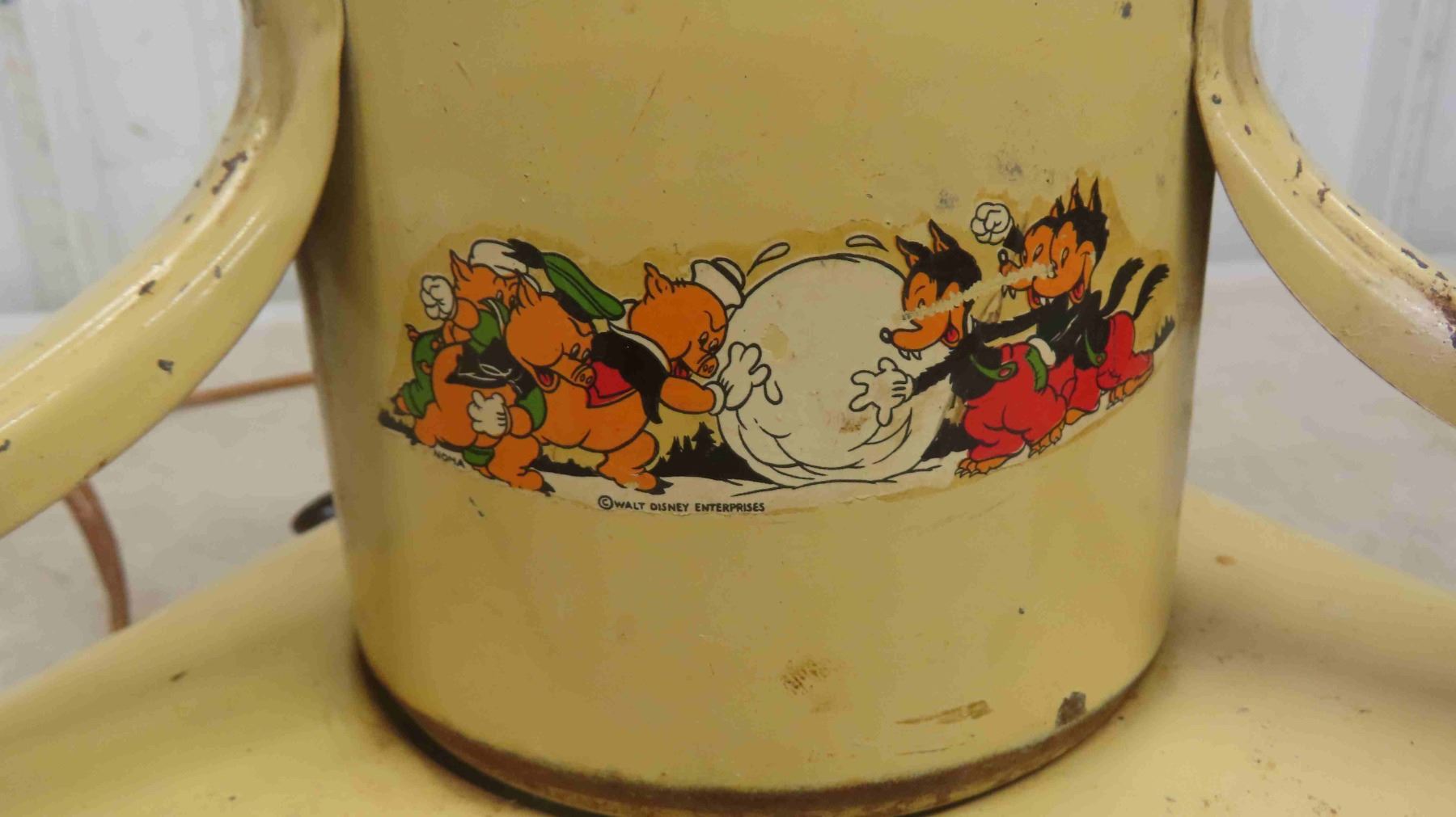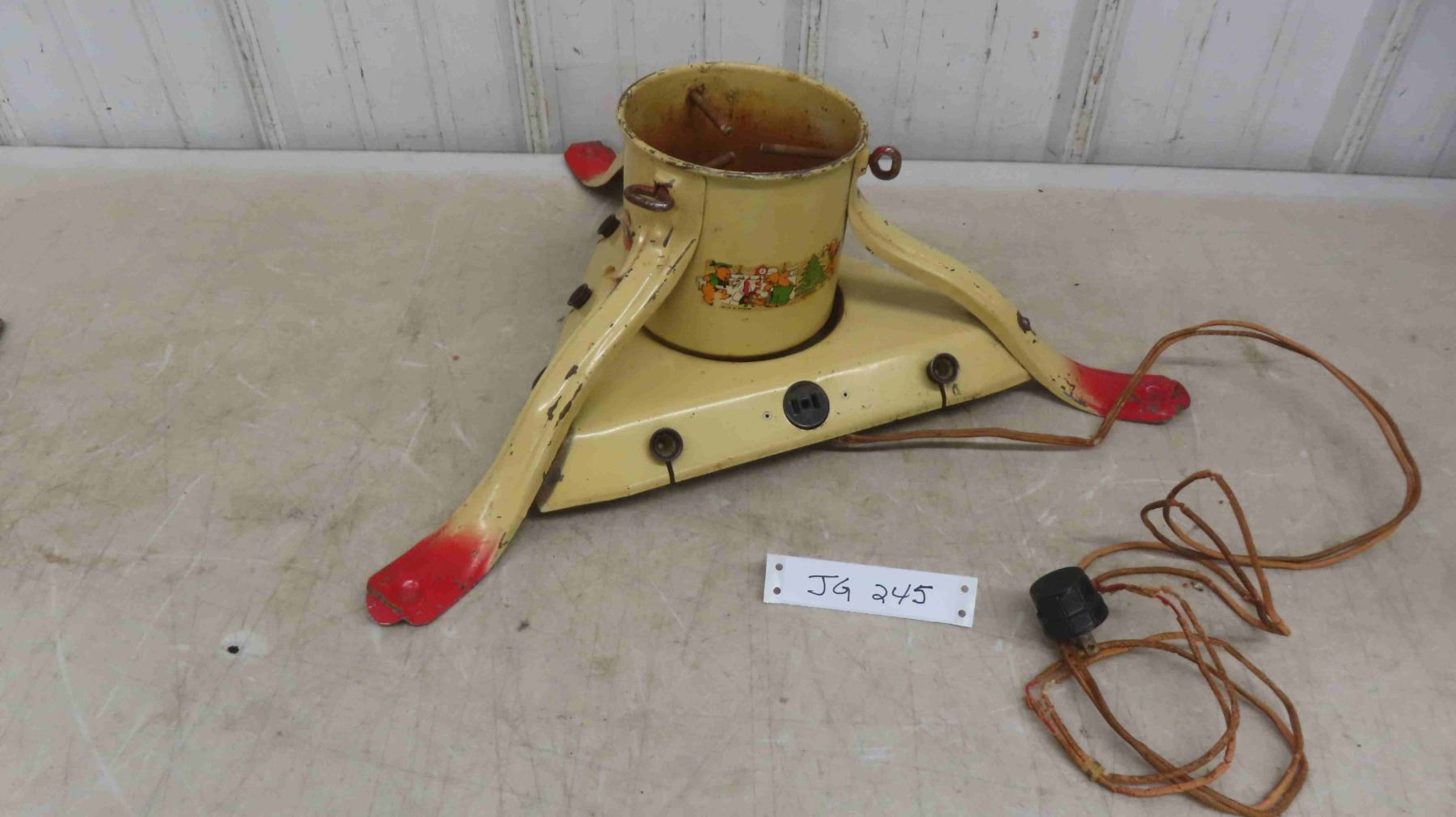 Antique Christmas Metal Tree Stand with Walt Disney Characters Around the Base - Light Sockets Might Need New Wiring