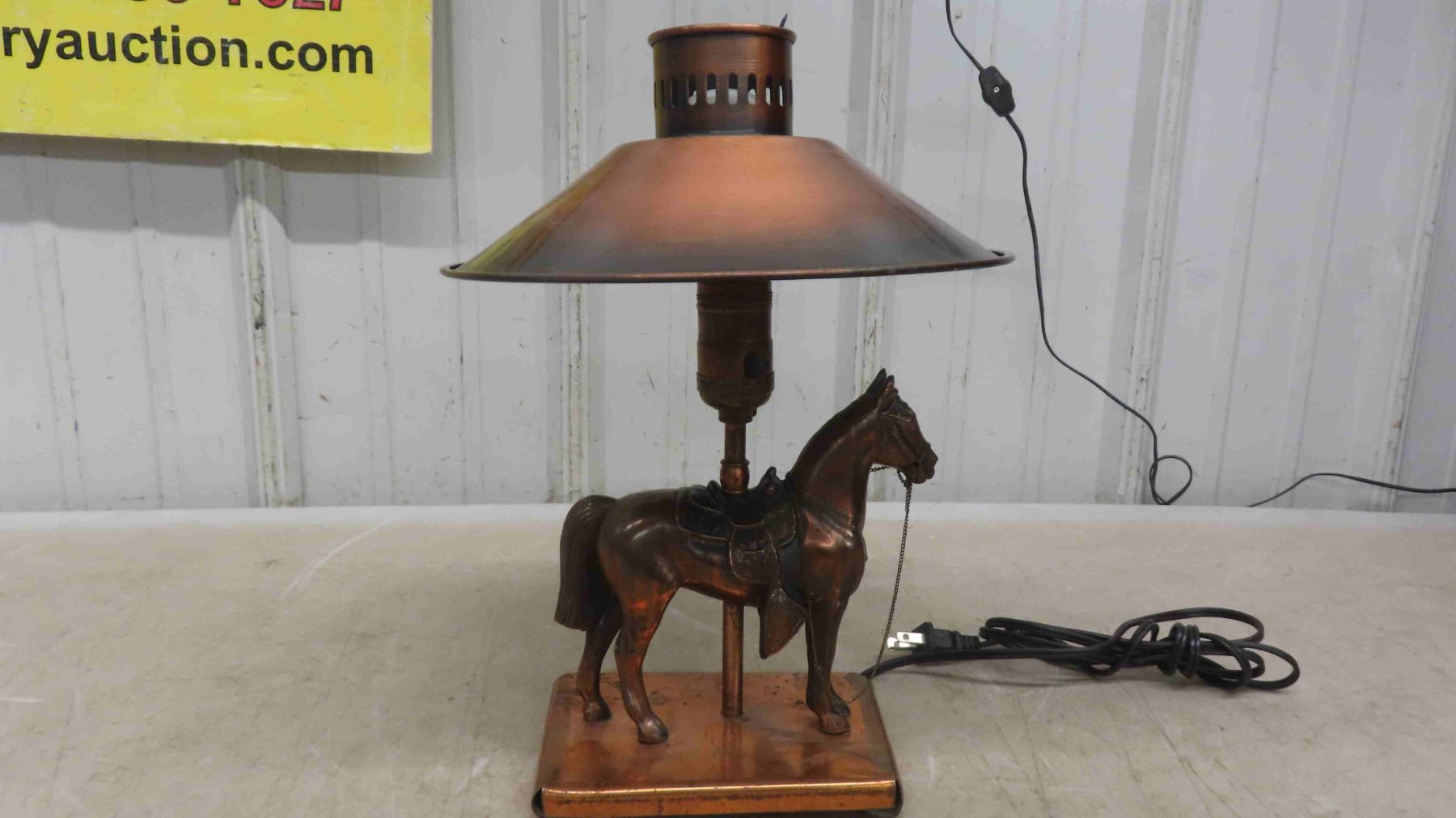 Antique Copper Lamp Western Horse 12'' High with Shade -Works