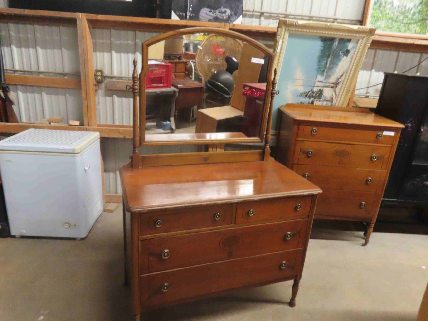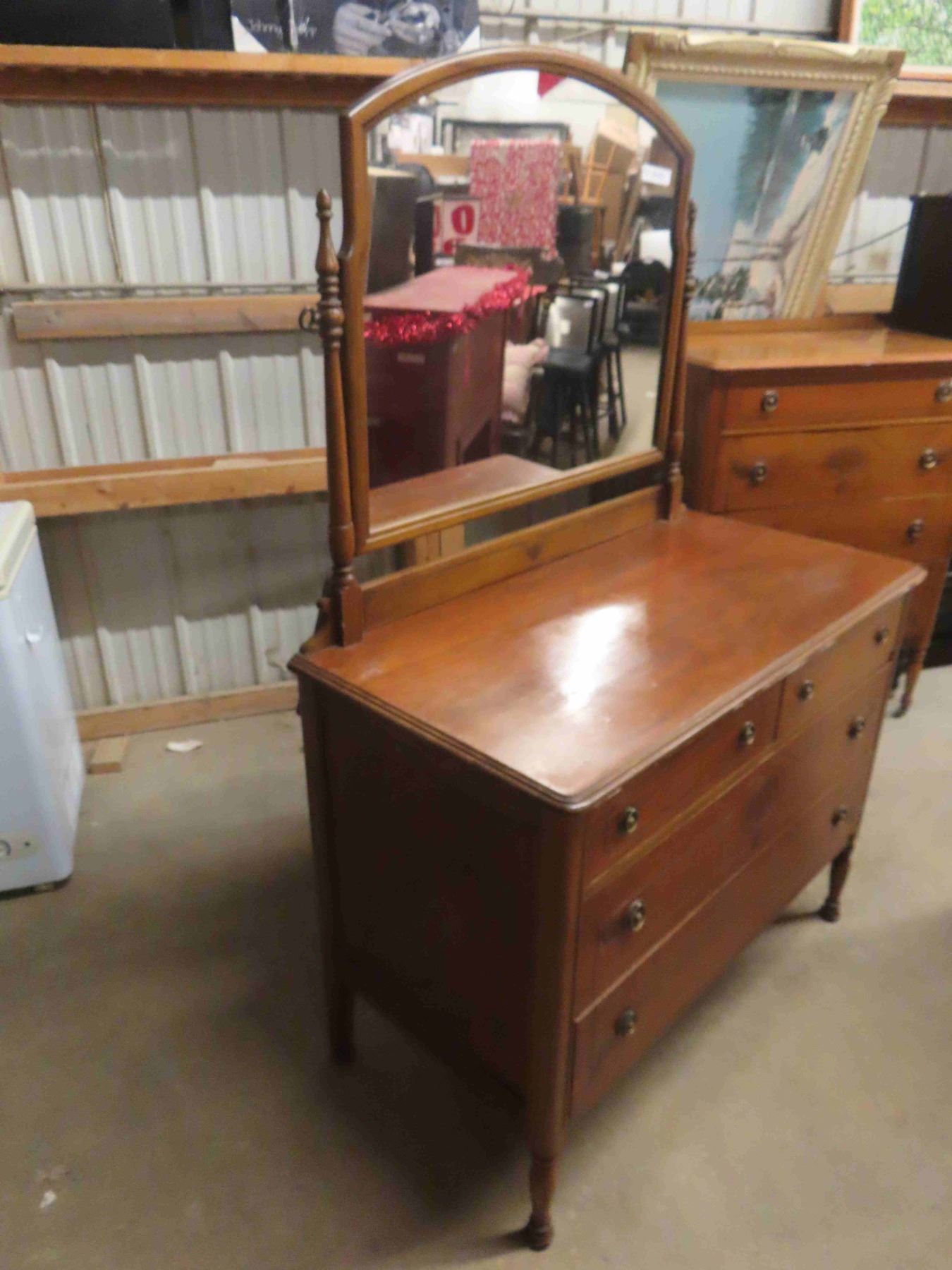 Antique Dresser + Mirror - 22" x 34" x 44" + Mirror 33" x 37"
