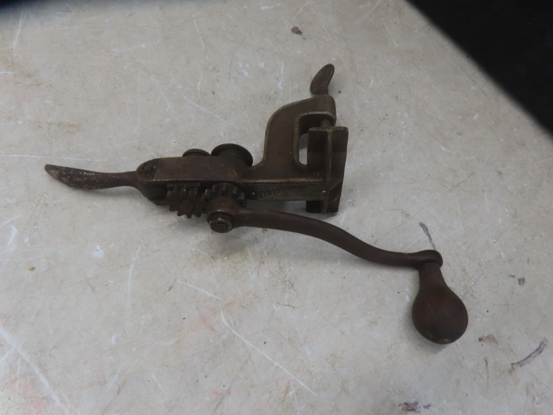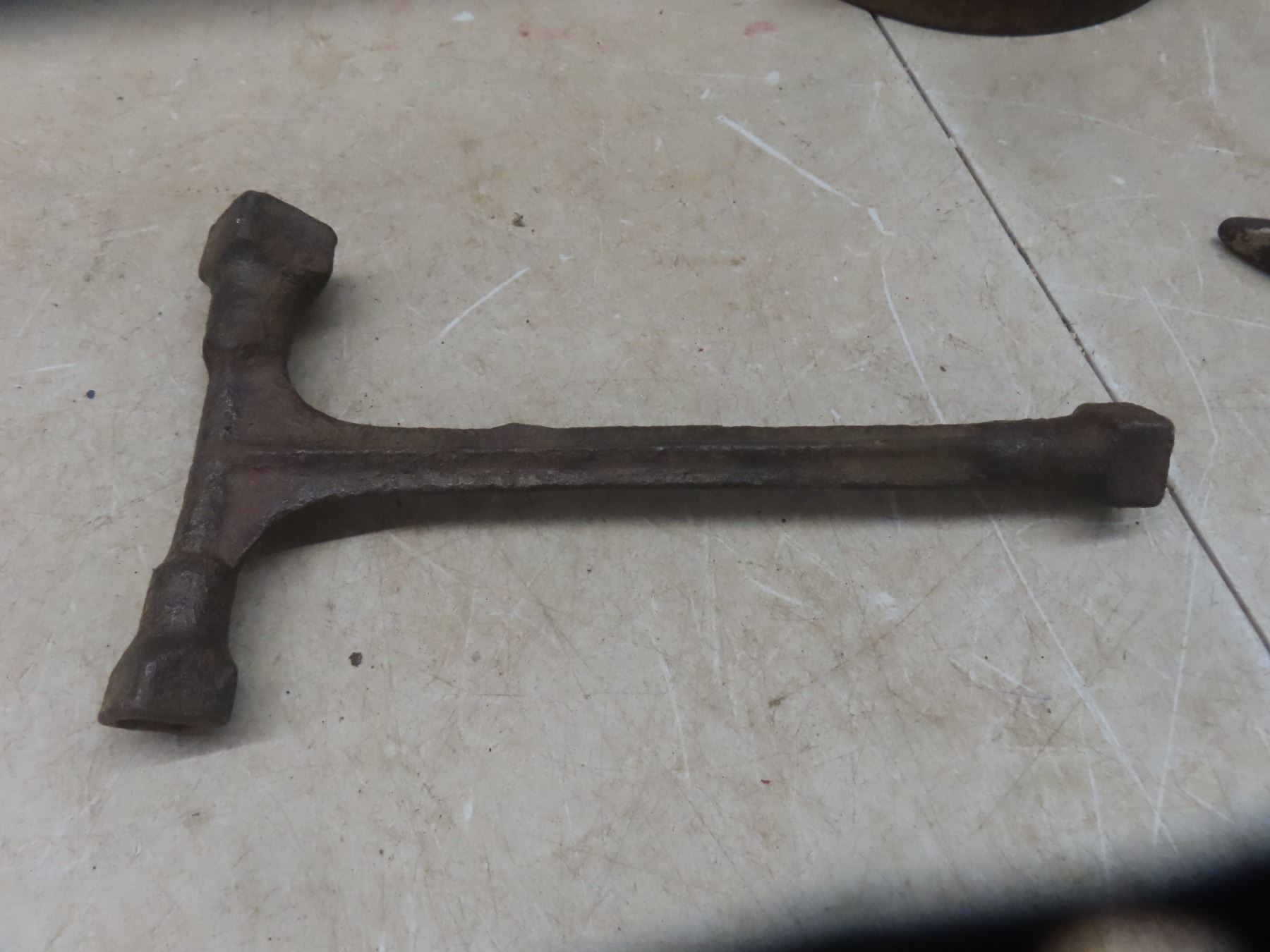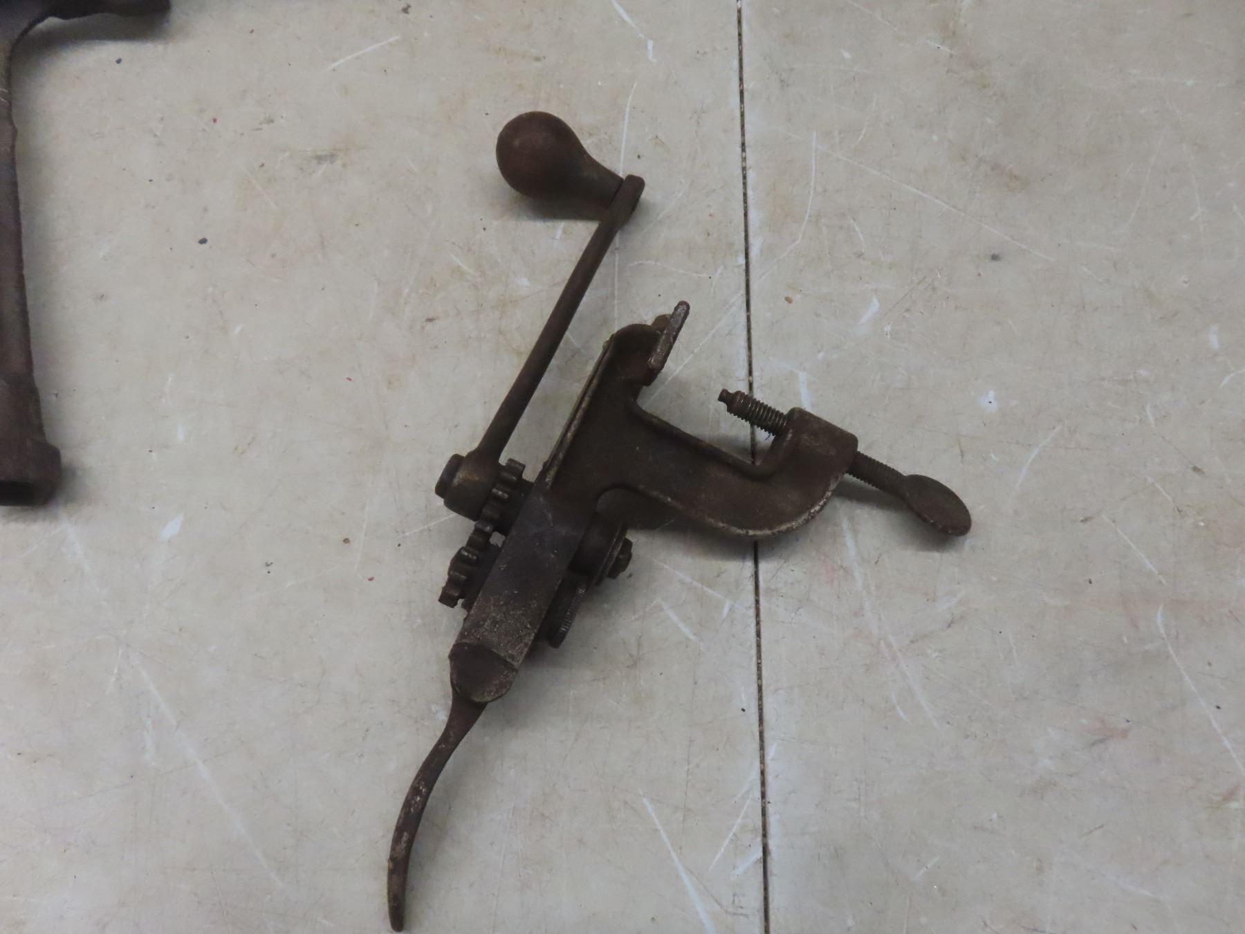 Antique French Shot Gun Cartridge Shell Press Reloader, T Handle Wrench, Wood Folding Ruler, Blacksmith Tongs +