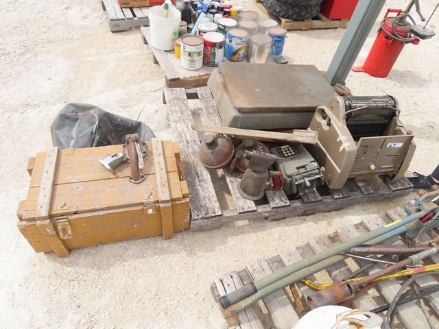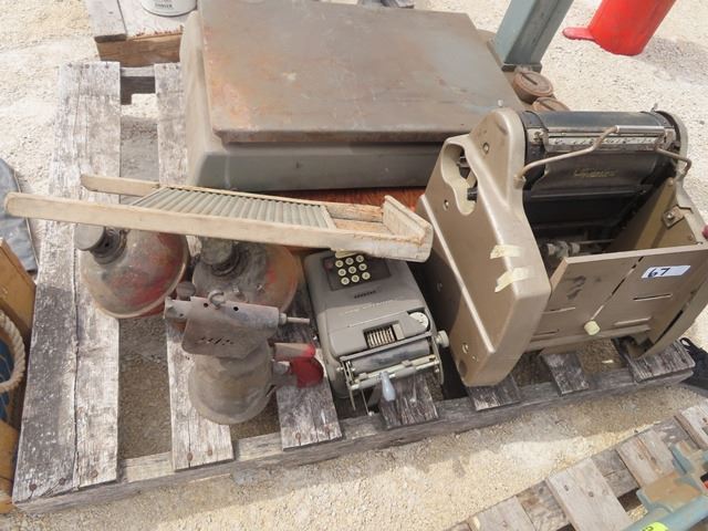 Antique Gesetener Printer, Washboard, Blow Torch, Road Flares, Crate , Freezer Door Hardware