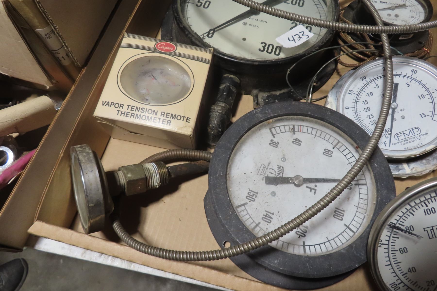 Antique Pressure Gauges, 300PSI, 2 Cooler Gauges, 20-220 Temp Gauge, 1 @ 30-150 Temp Gauge
