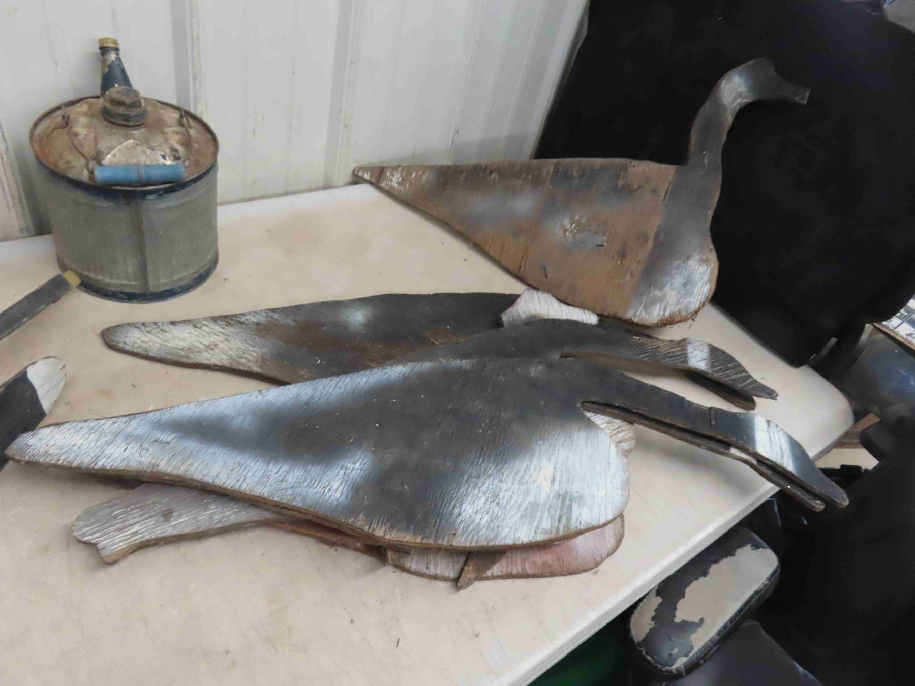 Antique Primitives: Old Wood Tub, Crock, Wood Geese Décor, Windmill Décor