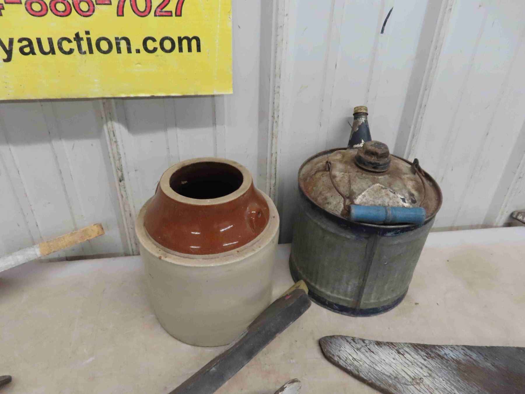 Antique Primitives: Old Wood Tub, Crock, Wood
