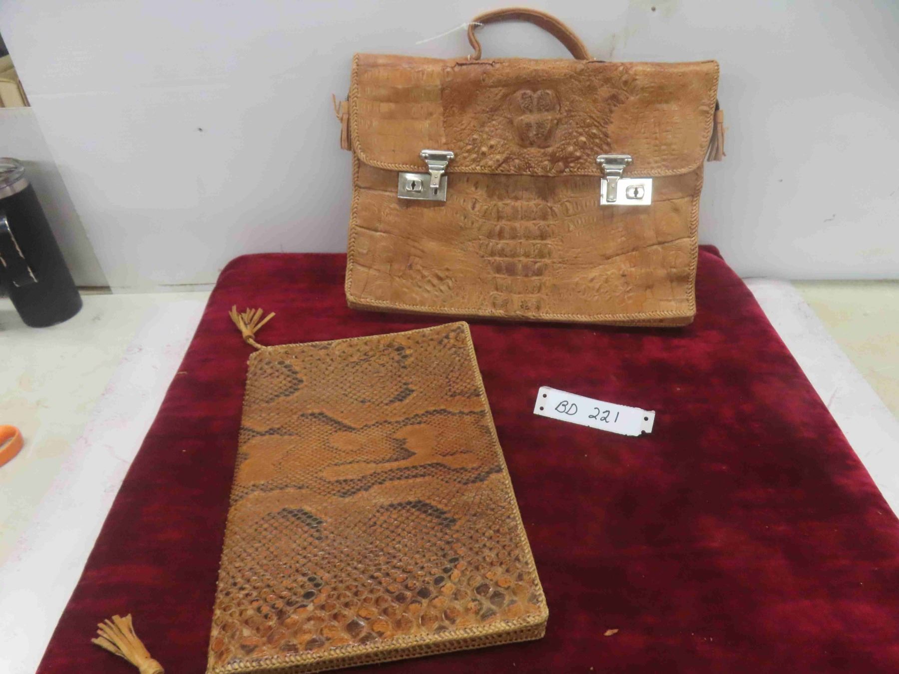 Antique Real Alligator Brief Case 13'' T x 15'' W (Very Good Condition), Snake Skin Portfolio (Very Good Condition)