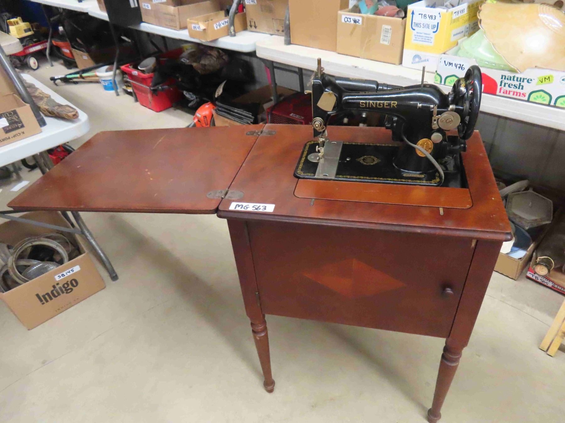 Antique Singer Sewing Machine in Hide -a-way Cabinet 16" x 22" x 31"