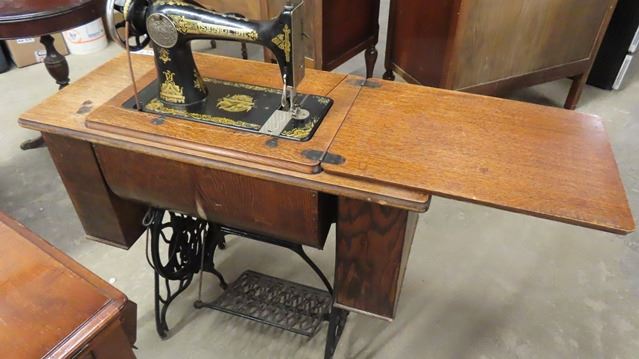 Antique Singer Sewing Machine with Cabinet- Folded Up Measures 16" x 29" x 36"