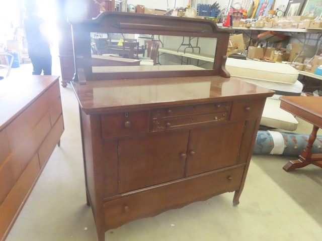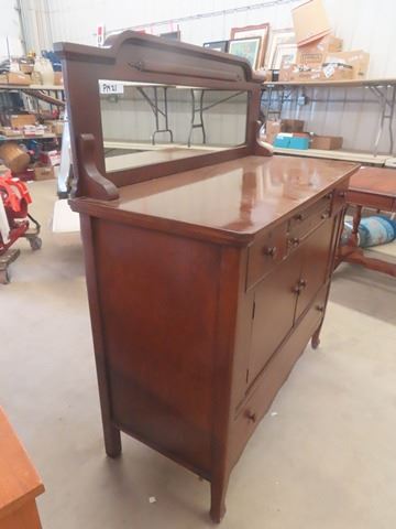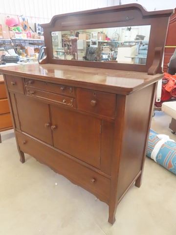 Antique Solid Oak Buffet with Mirror 18" x 48" x 55"