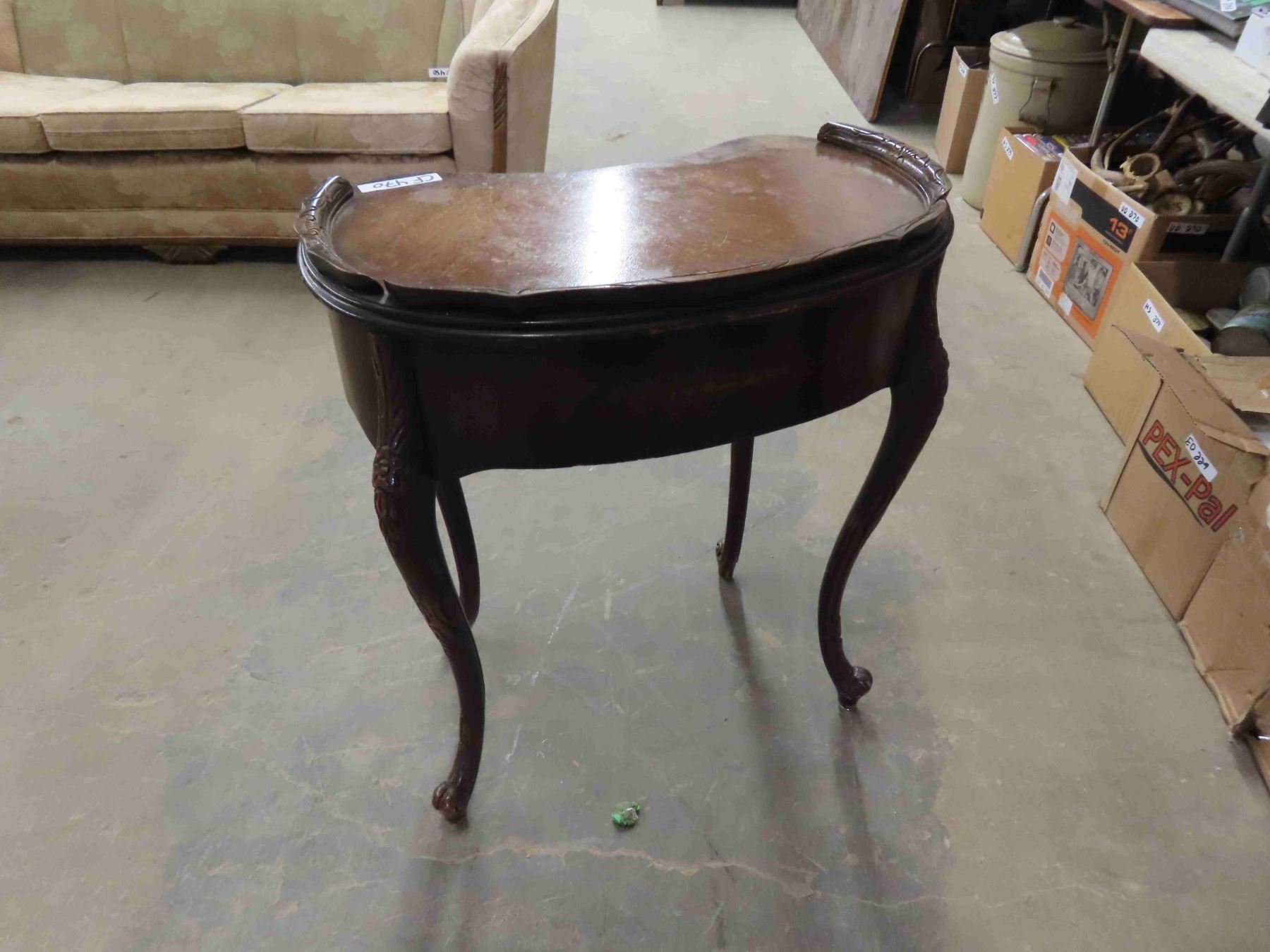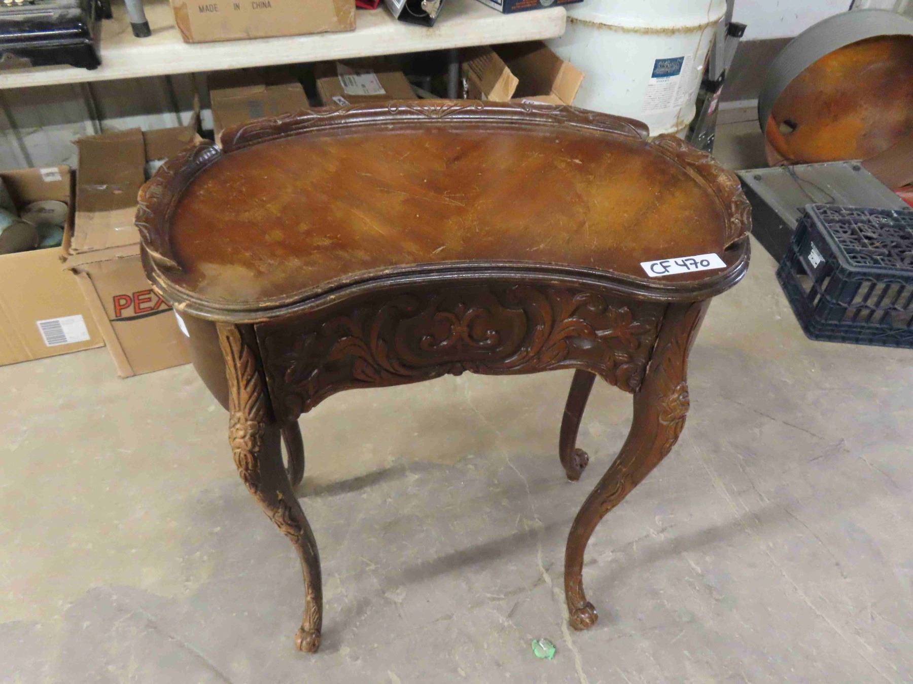 Antique Solid Wood Bean Shaped Desk/ Table with Drawer 14" x 27" x 31"