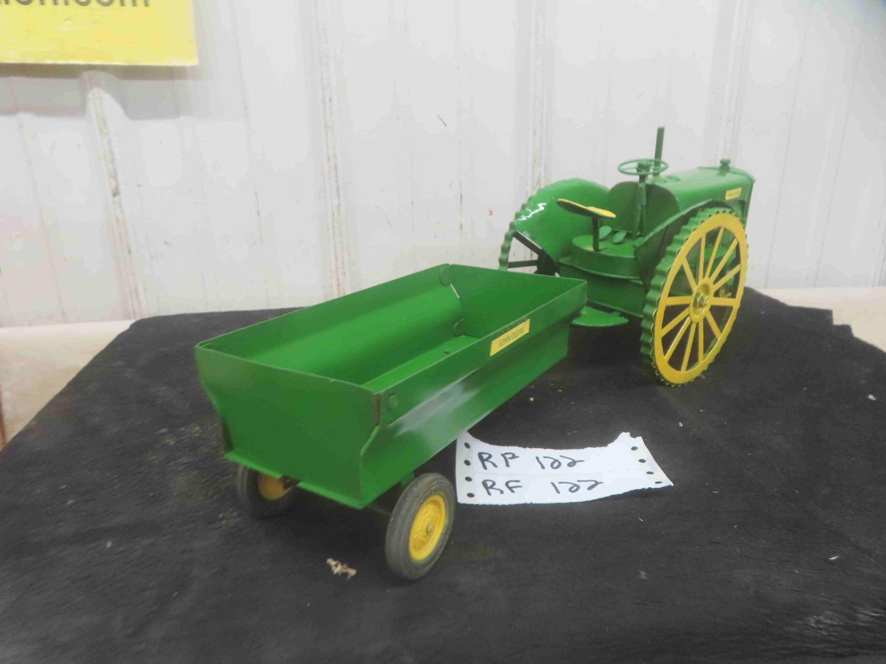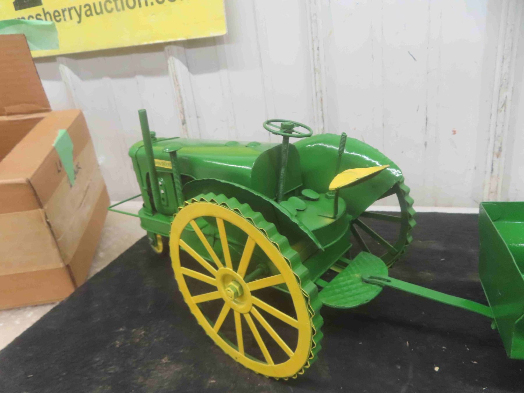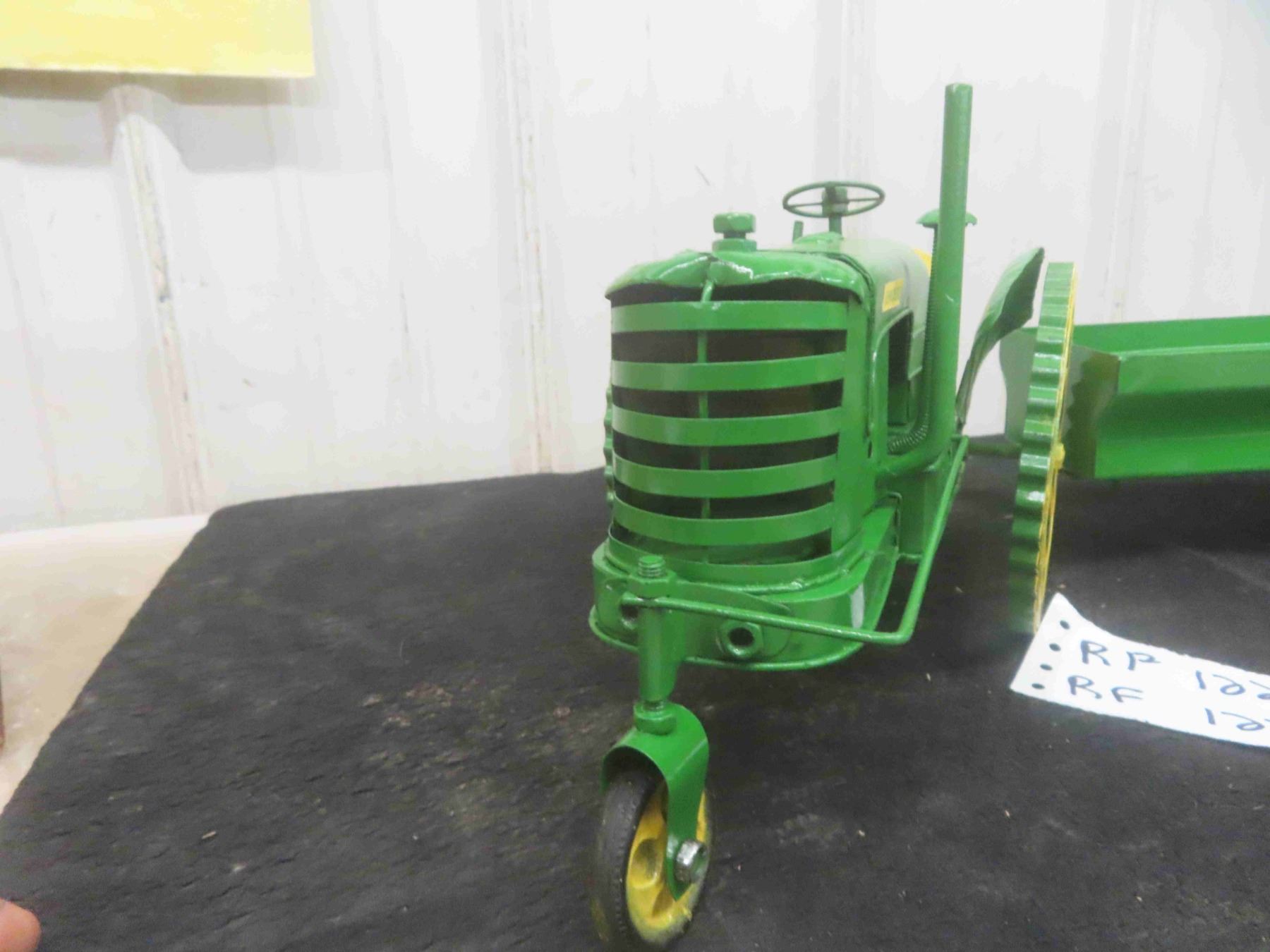 Antique Tin Metal Tractor and Trailer 20'' x 6'' x 6'' (Restored)