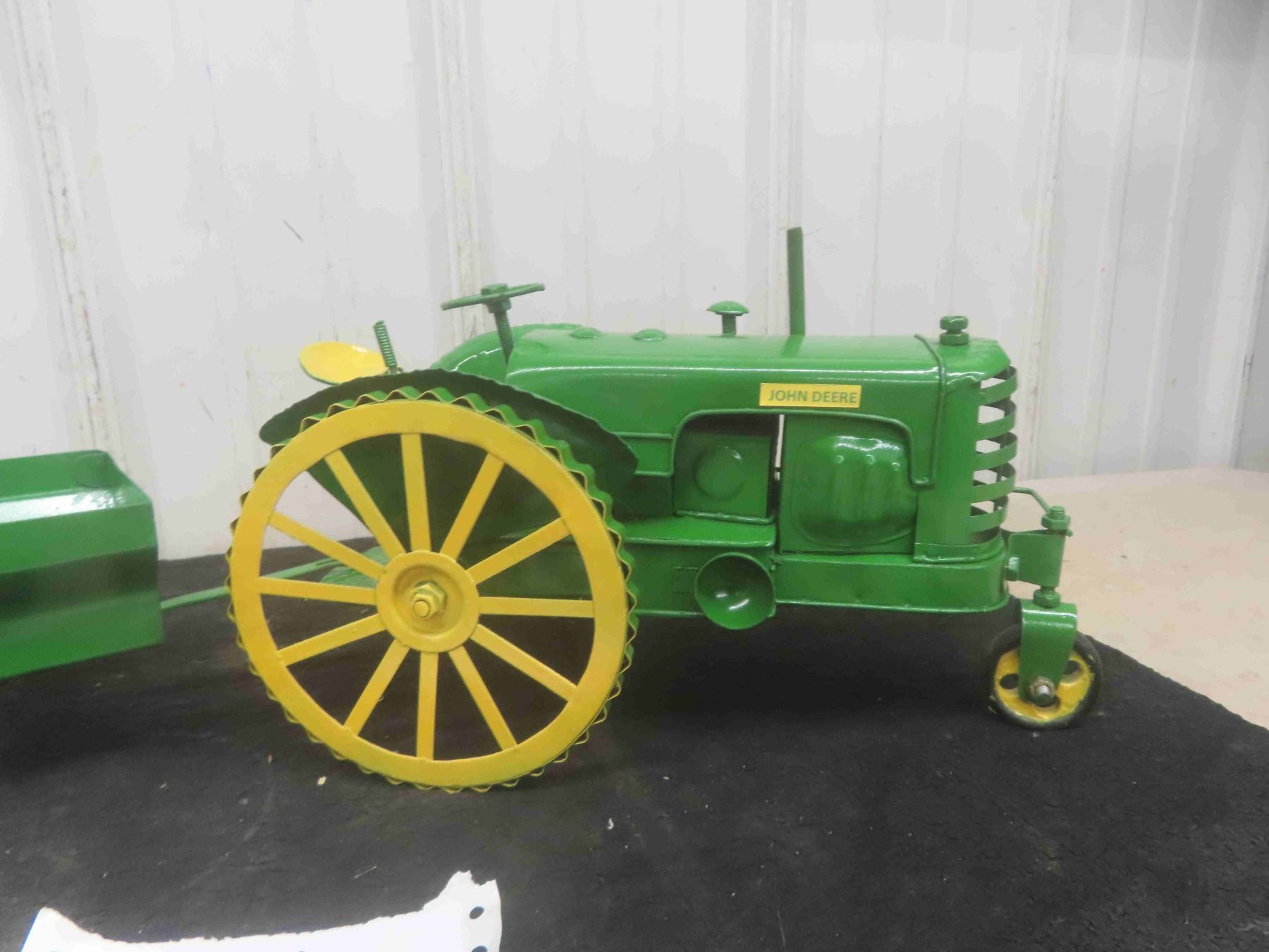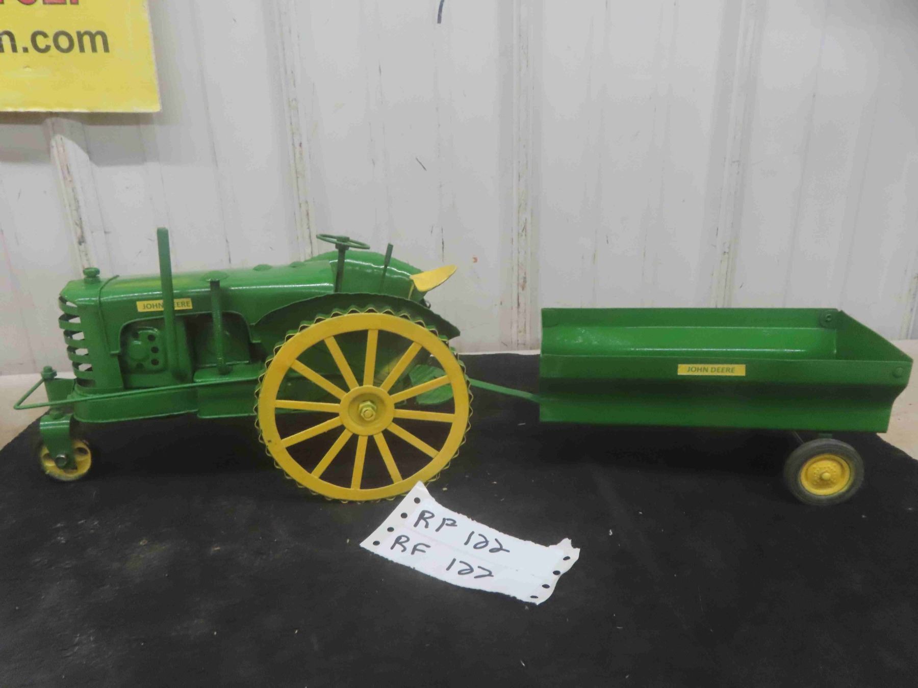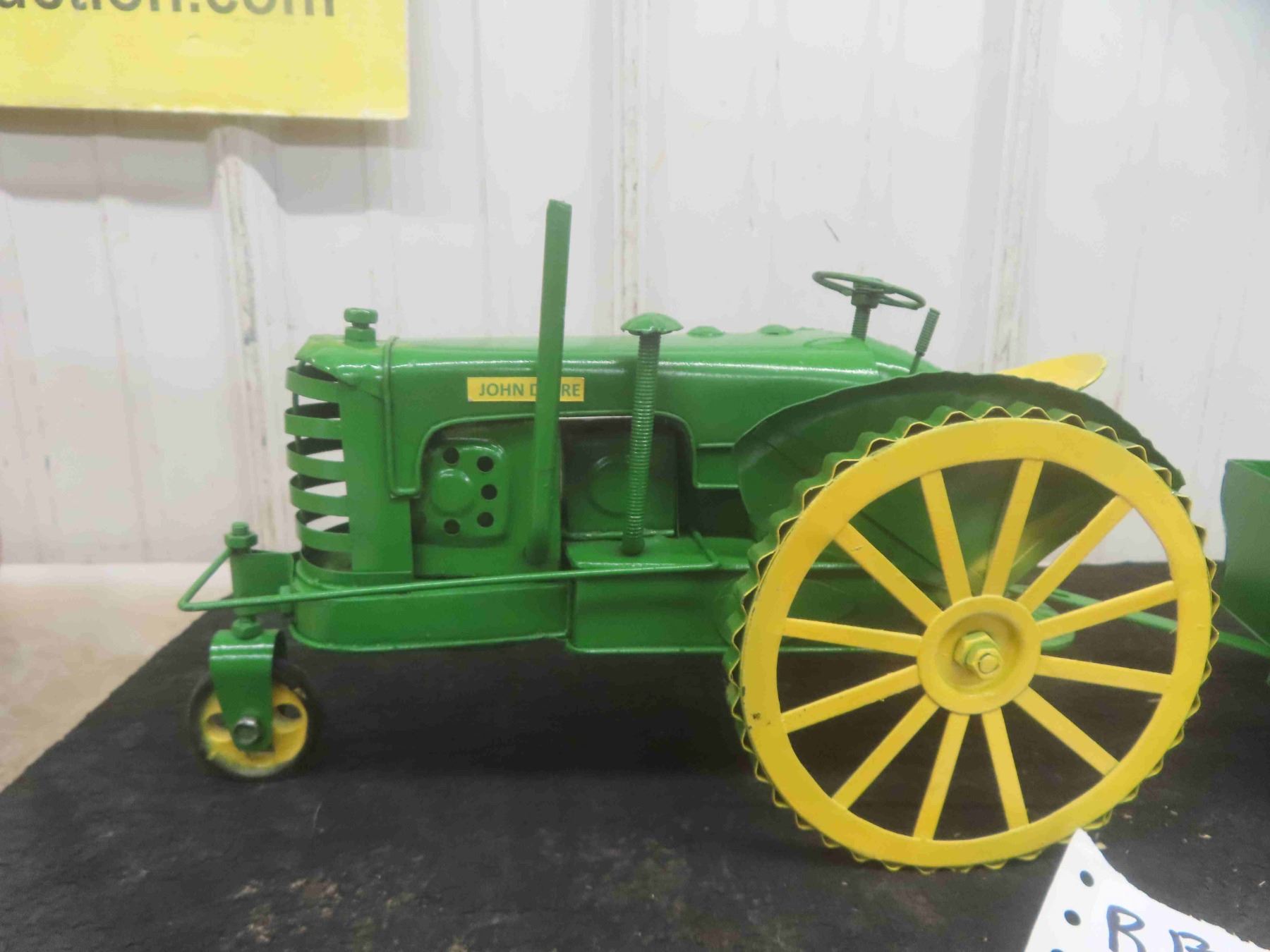 Antique Tin Metal Tractor and Trailer 20'' x 6'' x 6'' (Restored)