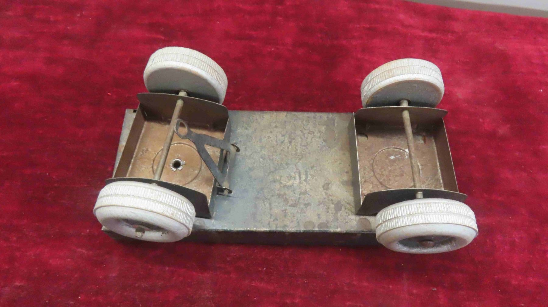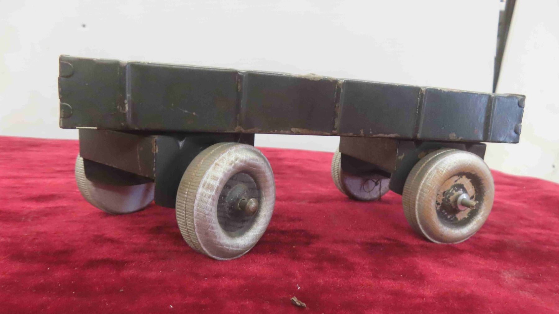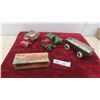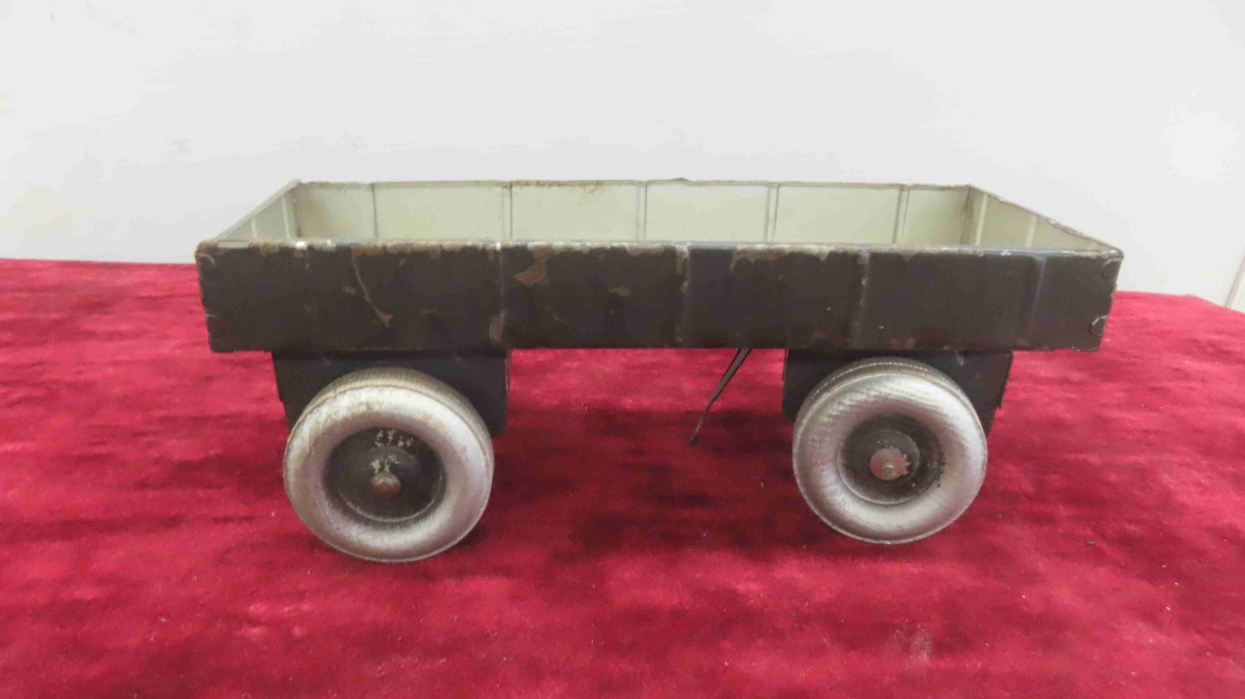 Antique Toy Lot : Steel and Tin Wind Up Dump Truck , Tin Freight Wagon , Tin Truck Cab , Empty Japan Toy Box for Pontiac Toy Car