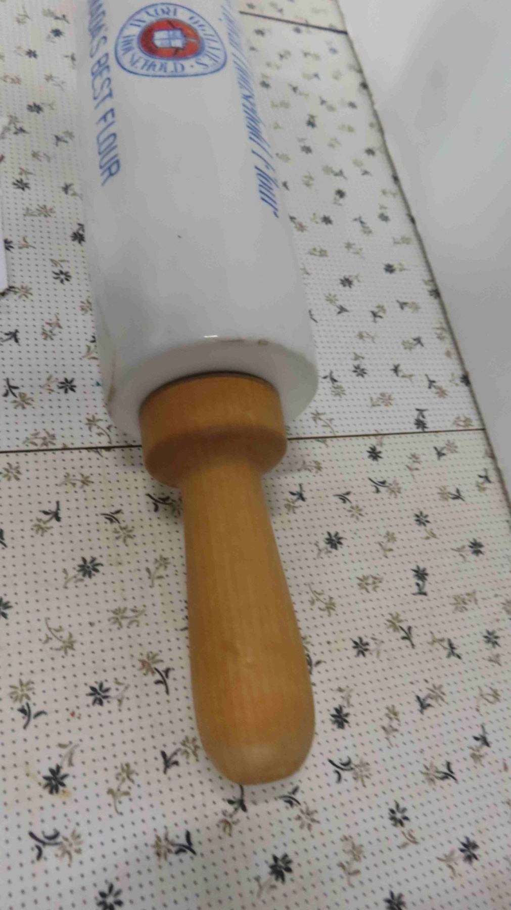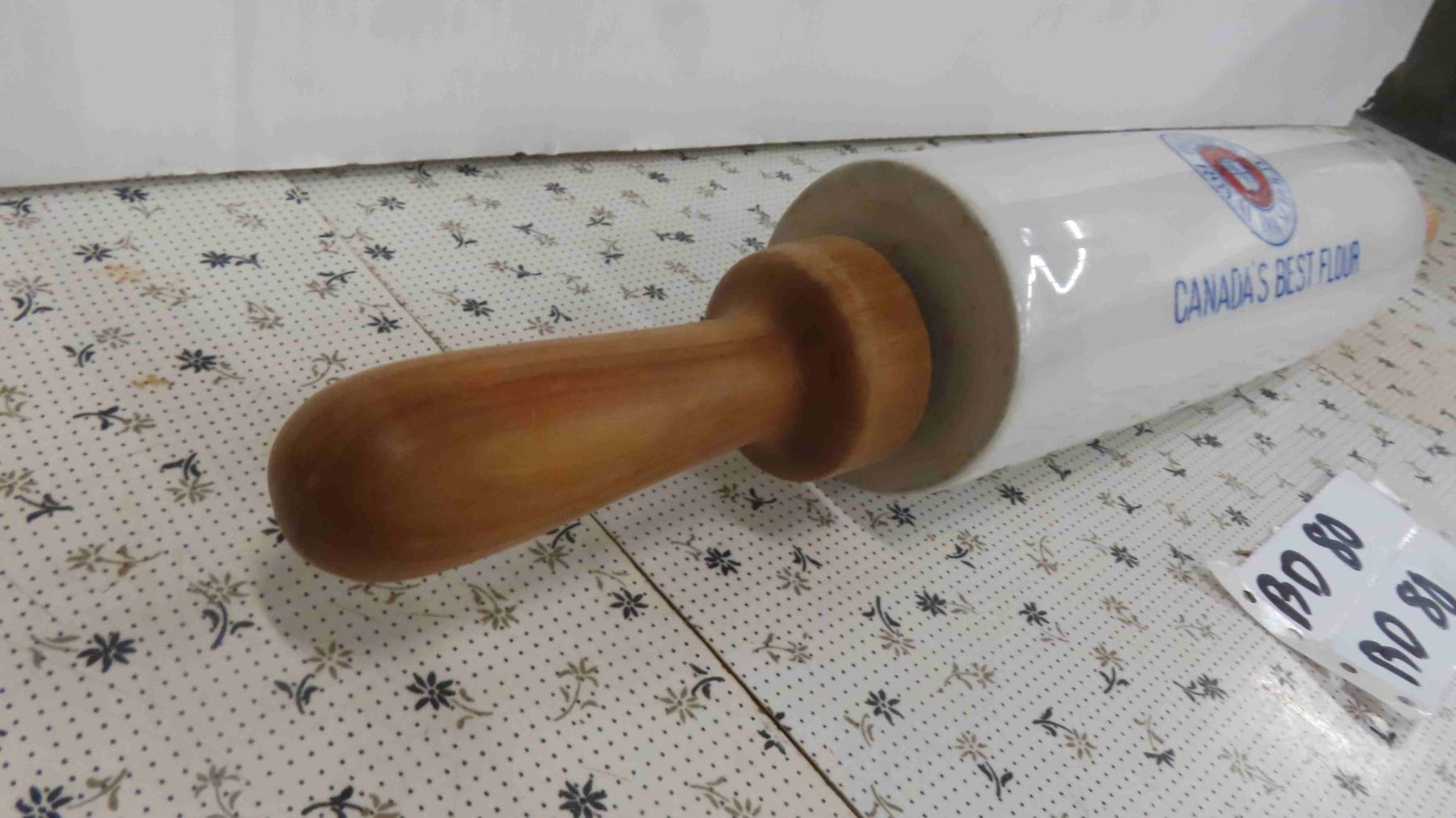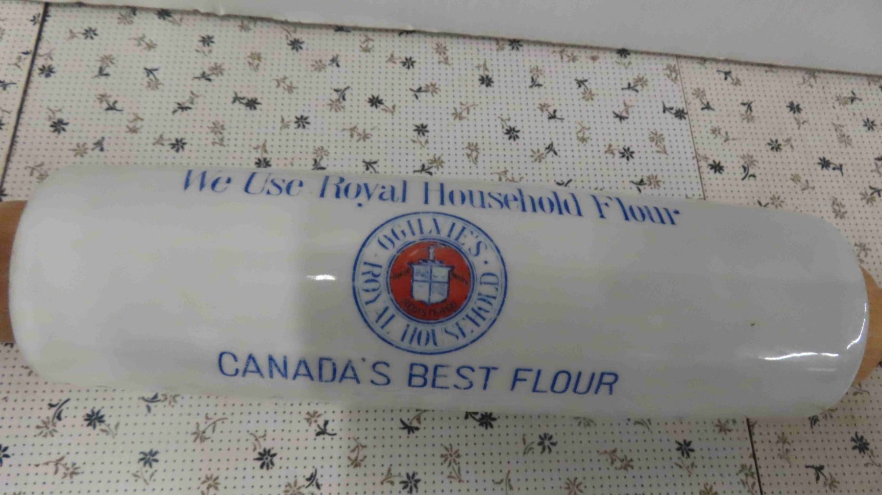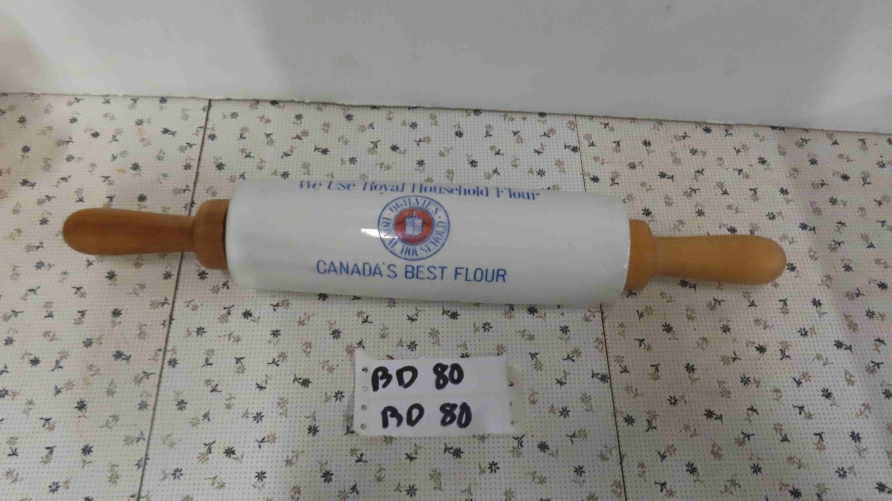 Antique Very Rare Royal Household Flour Advertising Promo Rolling Pin Glazed Pottery Made in Nippon (Which Became Japan) Very Nice