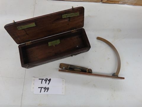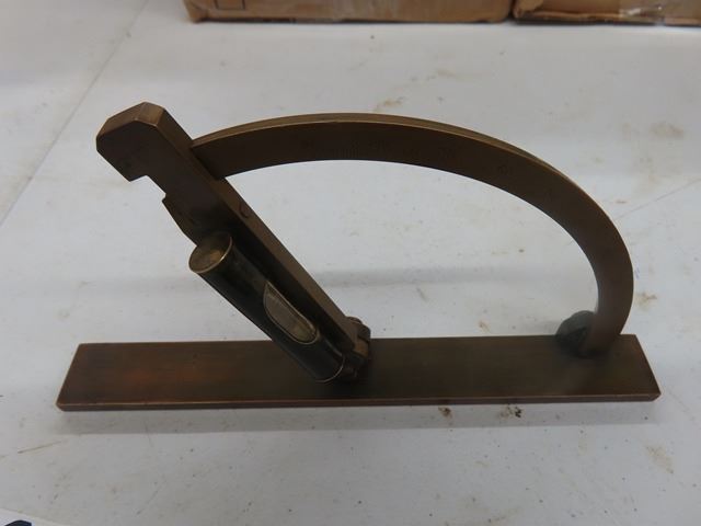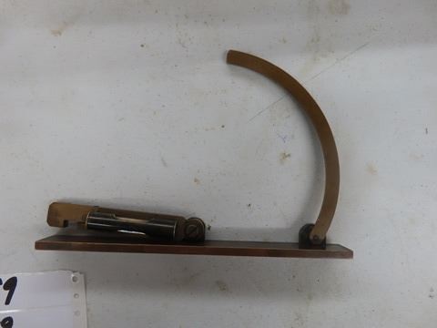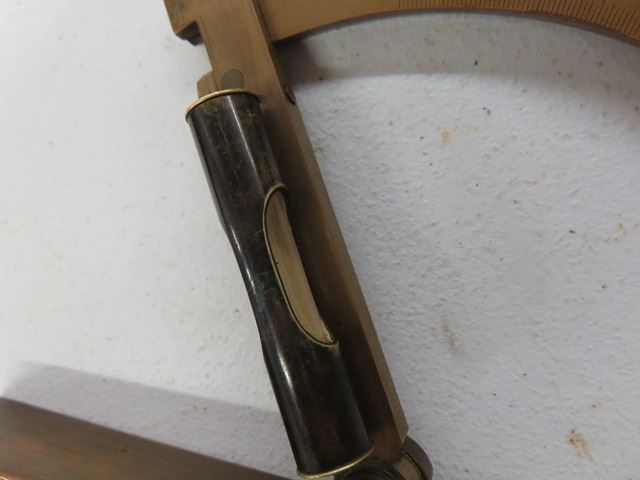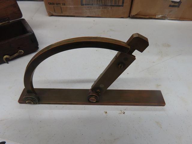 Antique Vintage Heavy Brass Protractor Inclinometer with homemade wooden box. It is so finely made; it belongs on a mantle at home. It is in perfect condition.