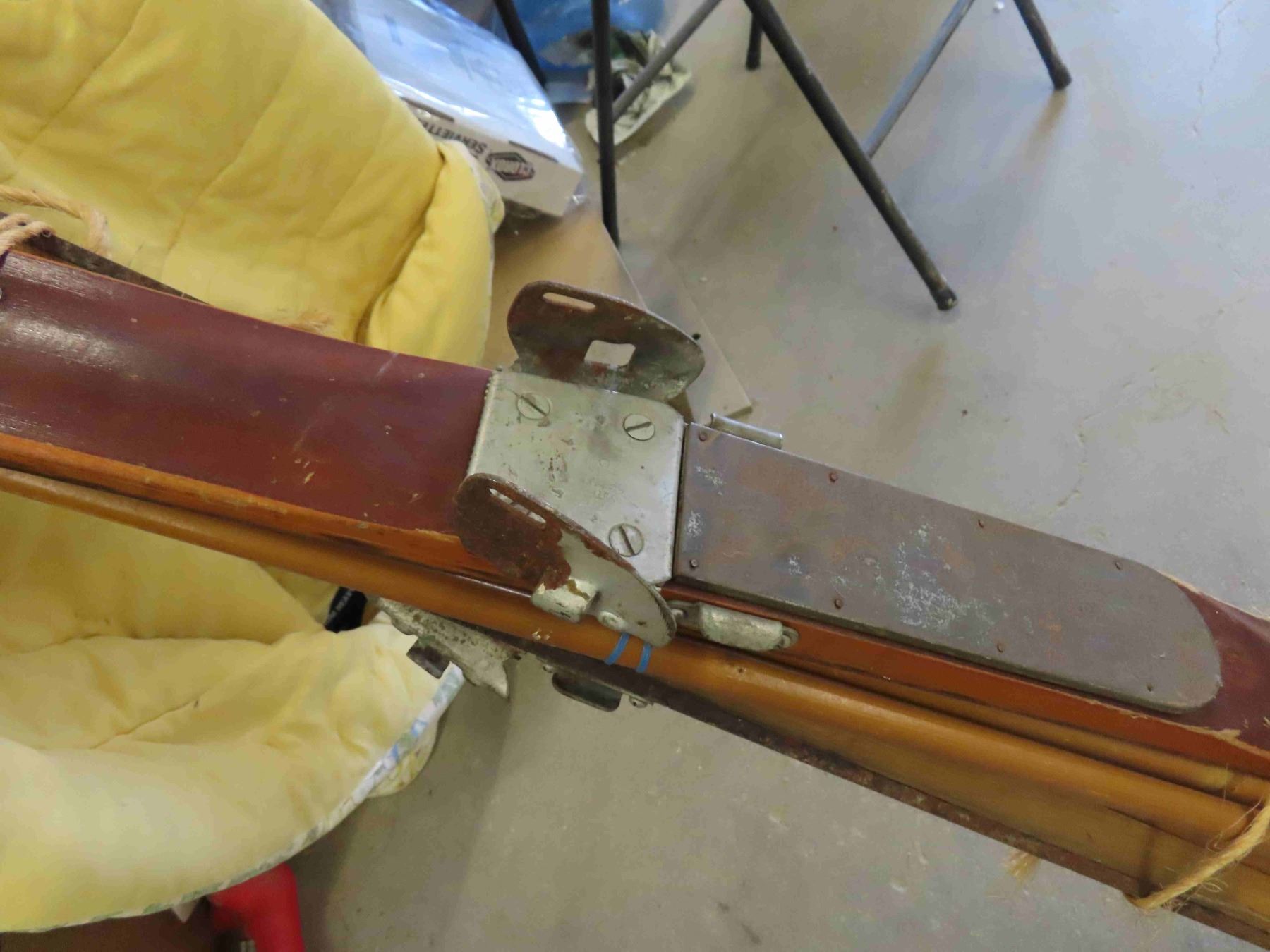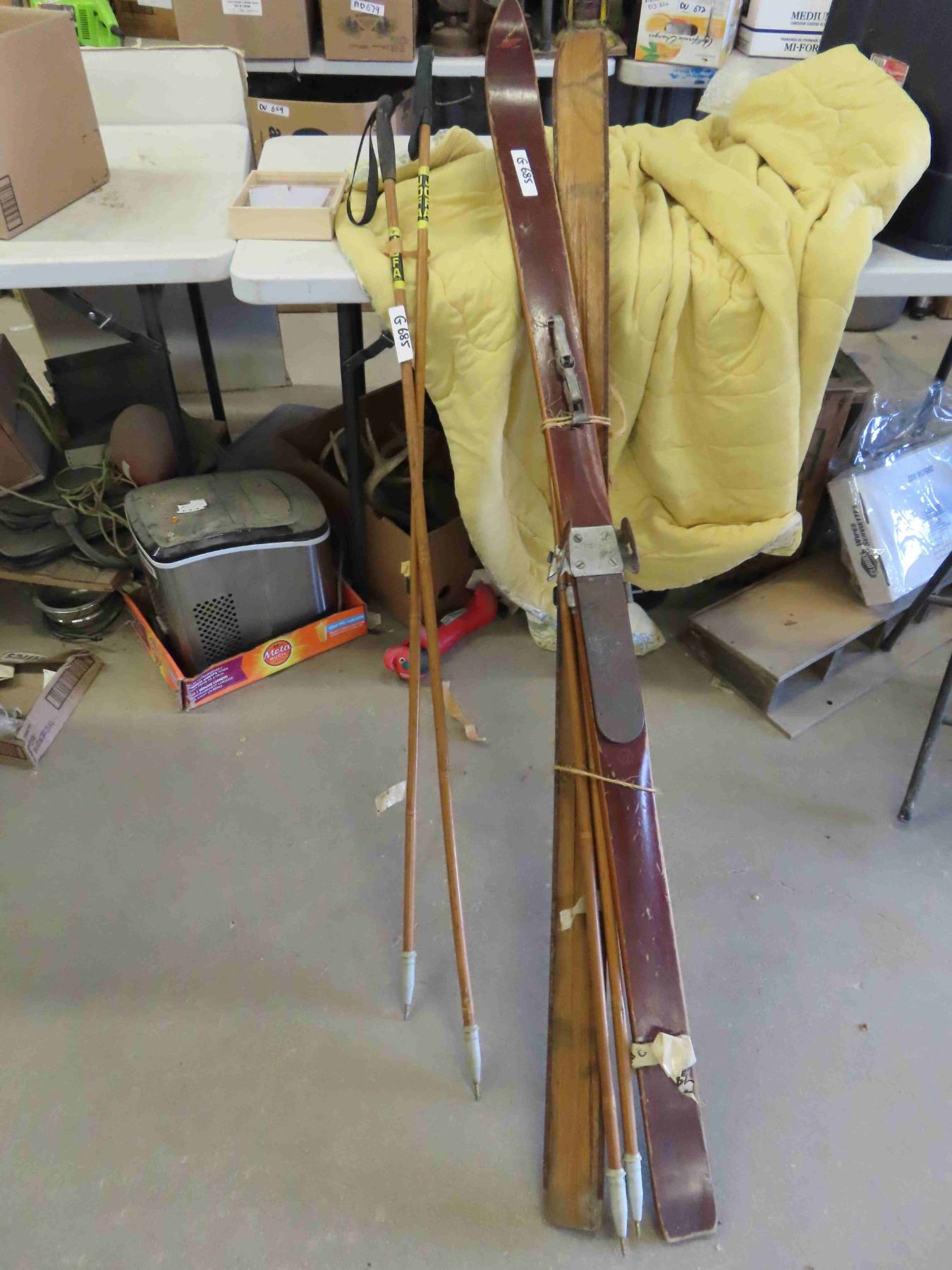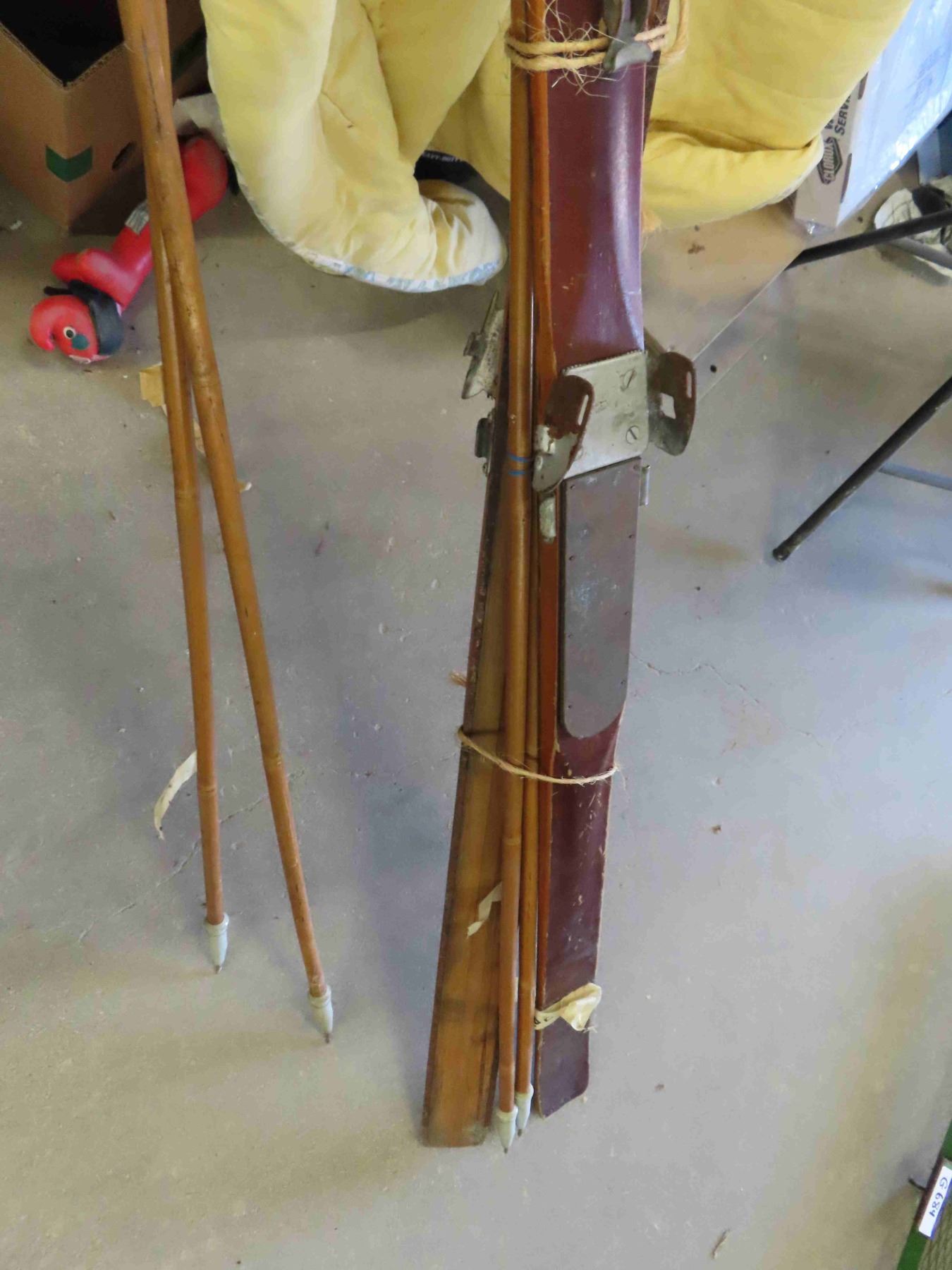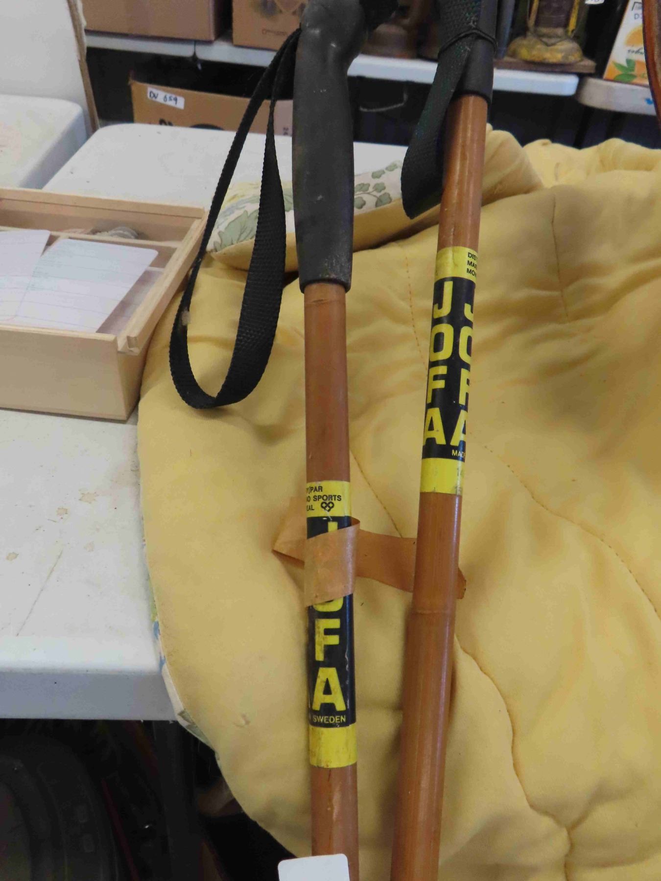 Antique Wood Skis with Boot Bindings and 2 Sets of Poles - 1 Marked Jofa